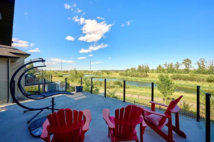 This Original Owner customer built, Modern, Luxury, awards winning home is surrounded by a stunning green belt, natural reserve, and a pond from the back. TRIPLE attached garage with gas heater, fully finished WALKOUT basement. CURVED stairs with open risers going up, in-floor heating on all Three levels. 9 ft high on each level. Air Conditioning. HRV and Sound system throughout the house including the garage and main level deck. This modern contemporary home has more than 3700 sqft living space. The vaulted ceiling is 27 ft. the open-concept design offers breathtaking views from every corner of the house. Sitting in the living room with floor-to-ceiling windows, the magnificent view helps melt away all the stresses. The electric fireplace is surrounded by the artistic titled wall brings you the feeling of such a beautiful life. The kitchen boasts gleaming quartz countertops, a missive panty, and walnut ample cabinetry. Entire main floor is tiled with in-floor heating. Come and experience the essence of luxury and peaceful living. Upstairs offers even more significant views from the master bedroom and family room. you will be energized by the morning sun. A double-sided gas fireplace adds luxury to your bathing and reading rituals. you will be amazed by the architecturally designed walk-in closet, and fully titled jet tub. The laundry room is thoughtfully accessible from the hallway serving two more spacious bedrooms on the upper level. The basement is a paradise for you and your loved ones, featuring a fully equipped home theatre, a wet bar. the spacious living room is a dream place for your musical instruments, or your precious fitness equipment. An additional bedroom provides extra space for family or friends. The entire home has 9' ceilings, 8' solid interior doors. 2022 furnace. Softer water and RO water. electrical rough-in for a backyard hot tub. The yard is fully fenced, professional landscaped, lots of fruit trees and vegetable gardens plus a fishpond. The entire house offers a dream setting for a luxurious lifestyle.
