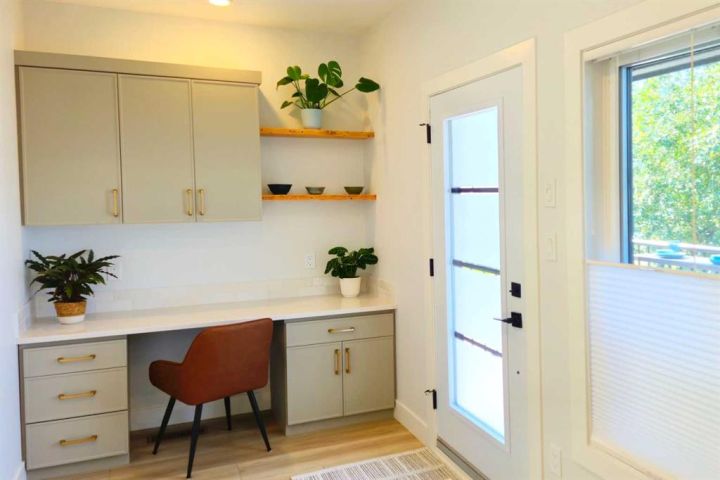 Built-in Features, High Ceilings, Kitchen Island, Open Floorplan, Quartz Counters, Vinyl Windows