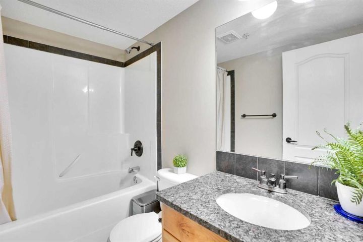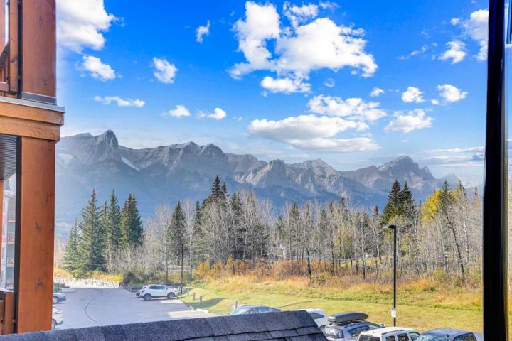 Welcome to your new home! This meticulously kept 3-BEDROOM, CORNER UNIT comes with a SPACIOUS FOYER and an OPEN FLOOR PLAN. The L-shaped kitchen boasts of NATURAL WOOD CABINETS, GRANITE COUNTERTOPS and a BRAND NEW DISHWASHER. The dining room is at the center of the home and open to the HUGE LIVING ROOM with a cozy FIREPLACE and serene views of the mountains and woodlands. The spacious BALCONY is perfect for your morning coffee, afternoon tea or simply soaking in the breath-taking views! All the THREE GOOD-SIZED BEDROOMS fit a queen bed and even have room for a desk and more cabinets. The 4-piece bath comes with a SOAKER TUB and a vanity with UNDERMOUNT SINK and GRANITE COUNTERTOP and IN-SUITE LAUNDRY with STACKED FRONTLOAD WASHER & DRYER. This wonderful apartment unit comes with an ASSIGNED STORAGE LOCKER (#72) as well as 2 PARKING SPACES, one TITLED UNDERGROUND PARKING (#110) and an ASSIGNED OUTDOOR SURFACE PARKING STALL with plug-in (#35). This well-managed Blakiston condo complex offers OUTSTANDING AMENITIES including a FULLY EQUIPPED FITNESS CENTER, PARTY ROOM, HOBBY ROOM, WORKSHOP, TONS OF VISITOR PARKING and a convenient DOOR BUZZER SYSTEM for your online shopping deliveries. This condo complex is just steps to a PLAYGROUND, DOG PARK, CATHOLIC CHURCH, scenic WALKING TRAILS and BIKE PATHS. And short-term rentals or AirBnB's are NOT allowed in the building. There is amazing value in this home as it is currently the BEST & LOWEST PRICED 3-bedroom home in Canmore. Don’t miss out, book your showing today!