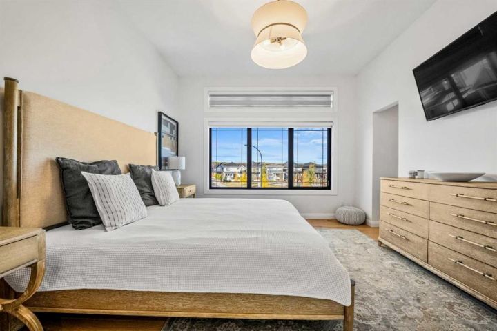 Welcome to 71 Creekstone Way SW, an exceptional AWARD WINNING residence that combines MODERN DESIGN, ELEVATED FINISHES, and FUNCTIONAL VERSATILITY in one of Calgary’s fastest-growing southwest communities. Thoughtfully designed for both everyday living and future flexibility, this stunning WALK-OUT HOME offers over 2,600 SQ. FT. ABOVE GRADE with remarkable craftsmanship throughout. Walking in, you’re greeted by 10-FOOT CEILINGS, OPEN RISER STAIRS, and GLASS RAILINGS, creating a sophisticated yet inviting atmosphere. The main floor features a BRIGHT, OPEN-CONCEPT LAYOUT with spacious living and dining areas anchored by a sleek fireplace. Surrounding the space are FLOOR TO CEILING COMMERCIAL PREMIUM WINDOWS WITH POWER BLINDS, allowing natural light to fill the home throughout the day. The CHEF’S KITCHEN is a true centerpiece, featuring FULL-HEIGHT CABINETRY, a JENAIRE FRIDGE, and ELEGANT FINISHES that seamlessly connect to the dining and living spaces. A PRIVATE OFFICE on the main floor adds convenience and functionality to the modern layout. Upstairs, the PRIMARY SUITE serves as a luxurious retreat with 10-FOOT CEILINGS, CUSTOM BUILT-IN CABINETRY, and a SPA-INSPIRED ENSUITE complete with dual sinks, a large glass shower, and a CUSTOM WALK-IN CLOSET designed for organization and style. Two additional bedrooms, a full bathroom, a cozy LOFT WITH BEAUTIFUL VIEWS, and an UPPER-LEVEL LAUNDRY ROOM provide both comfort and practicality for the entire family. The FULLY FINISHED WALK-OUT BASEMENT featuring a GYM with PREMIUM GYM FLOORING, 4TH BEDROOM, REC ROOM AND BAR SIN ROUGH IN. Head outside to the EXPOSED CONCRETE PATIO and FULLY LANDSCAPED BACKYARD complete with a GARDEN SHED. This home includes numerous thoughtful upgrades such as a HEATED GARAGE WITH EPOXY FLOORING, MUDROOM LOCKERS, a WATER SOFTENER, WATER FILTRATION SYSTEM, GARBURATOR, SONOS SYSTEM WITH BUILT-IN SPEAKERS, and a HEAT RECOVERY VENTILATOR for improved energy efficiency. Outside, enjoy peaceful evenings overlooking the yard with easy access to PARKS, PATHWAYS, AND LOCAL AMENITIES within the PINE CREEK / CREEKSTONE community. With its WALK-OUT BASEMENT, PREMIUM FINISHES, and FUTURE INCOME POTENTIAL, 71 Creekstone Way SW delivers an exceptional combination of LUXURY, FUNCTIONALITY, AND LIFESTYLE—all in a location designed to grow with you. Schedule your private tour today to experience this remarkable home in person.