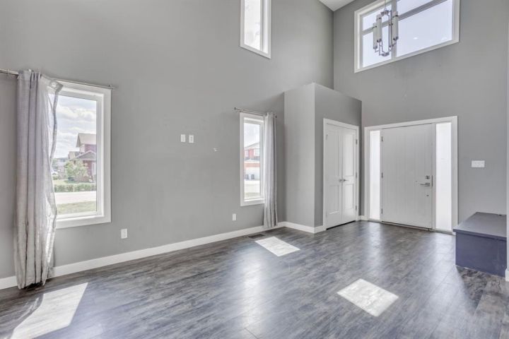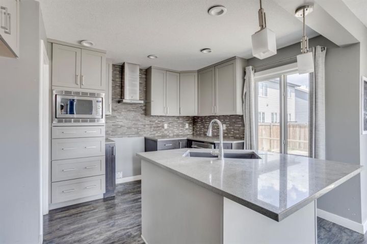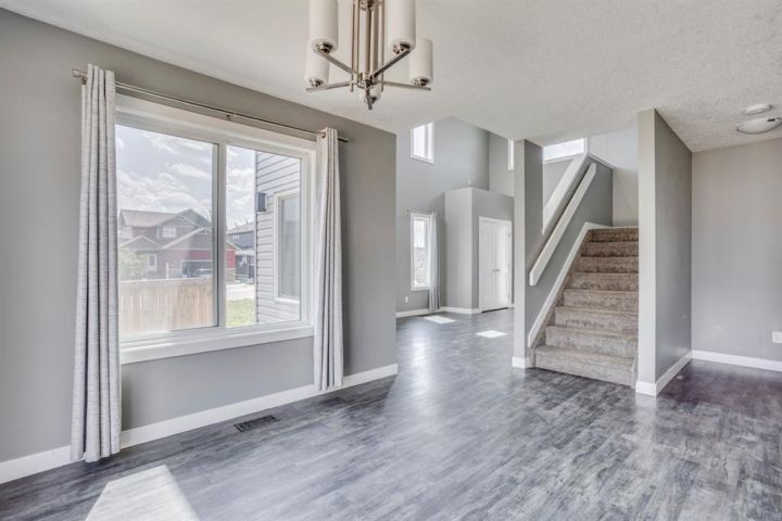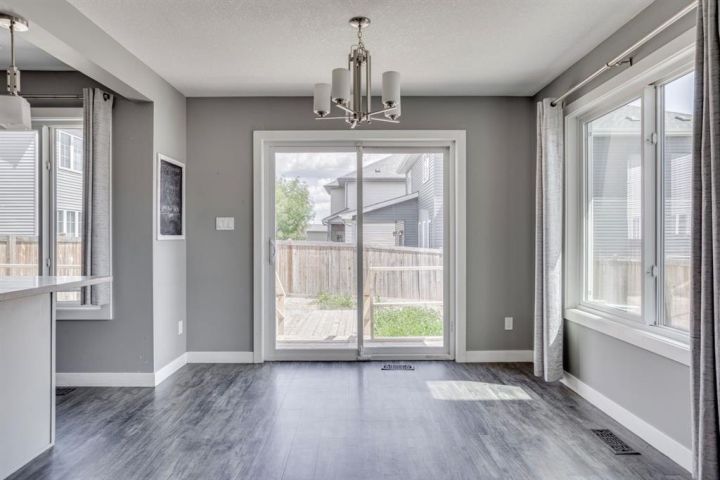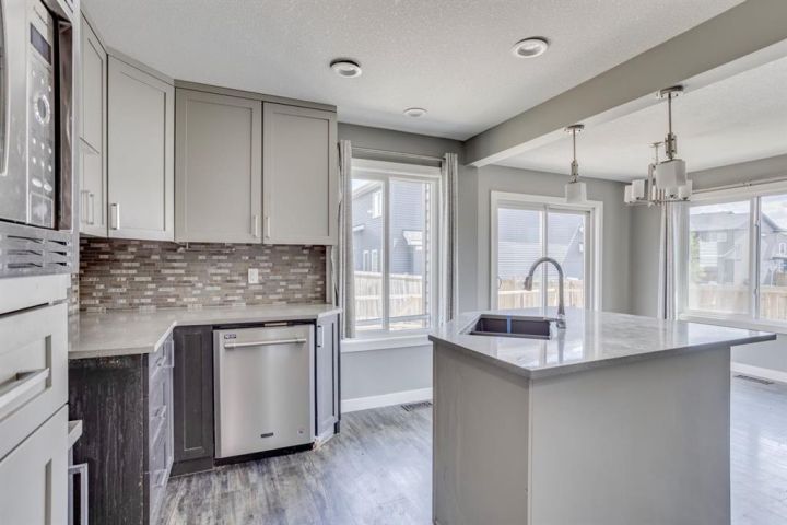 Beautiful Curb Appeal | Excellent Value | Incredible Potential Welcome to 189 Arsenault Crescent — a well-designed two-storey home offering 1,433 sq ft of living space, situated on a 4,521 sq ft lot in the sought-after, family-friendly neighbourhood of Abasand. Rebuilt in 2017, this 4-bedroom, 2.5-bathroom home showcases modern finishes throughout and holds incredible potential with just a little bit of TLC. From the moment you arrive, the curb appeal is evident. Step inside to a bright and spacious entryway featuring tall ceilings and durable vinyl plank flooring. The main level offers an elegant formal dining area complete with soaring coffered ceilings and large windows that flood the space with natural light. The heart of the home is the stylish kitchen, thoughtfully designed with two-tone cabinetry, quartz countertops, a centre island with breakfast bar seating, a sleek glass tile backsplash, and a modern range hood. Adjacent to the kitchen is a well-lit dining nook with direct access to the backyard through sliding patio doors — perfect for entertaining or enjoying outdoor meals. The living room is filled with natural light and offers a welcoming, open atmosphere ideal for everyday living. Upstairs, you’ll find a convenient upper-floor laundry area, three generously sized bedrooms, and two full bathrooms. The spacious primary retreat includes a walk-in closet and a luxurious 3-piece ensuite featuring dual sinks, quartz counters, and a tiled stand-up shower. The basement is partially developed and includes a fourth bedroom, with ample space remaining to create a recreation room, additional bedroom, or full bathroom — allowing you to customize the space to suit your family’s needs. Additional highlights include a 21'5" x 18'11" double attached garage, a double driveway, and neutral tones throughout that provide a perfect canvas for your personal touch. With solid bones and stylish features already in place, this home is full of potential and ready for someone to make it truly shine. Don’t miss the opportunity to create your dream home — schedule your private tour today!