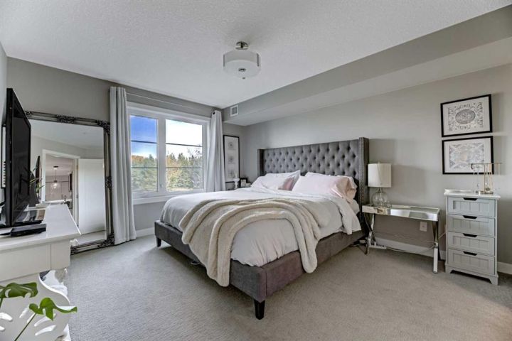 Experience elevated living at The Parc in Edgemont Ravine, in this beautifully appointed 2-bedroom, 2-bath residence situated in a boutique, 18+ community complex. Meticulously maintained and bathed in natural light, the open layout showcases premium finishes, a chef-inspired kitchen with a sprawling island, in-suite laundry, and air conditioning for year-round comfort. Enjoy morning coffee or evening wine on your private balcony with a natural gas BBQ hookup, surrounded by lush ravine views and scenic walking trails. Your titled underground parking and storage unit add convenience, while abundant visitor and street parking make entertaining effortless. The building’s curated amenities include an elegant lobby, social lounge, and inviting outdoor seating area — all designed to enhance a sophisticated, low-maintenance lifestyle. A truly exceptional opportunity for discerning buyers seeking ravine living, tranquility, and timeless style.