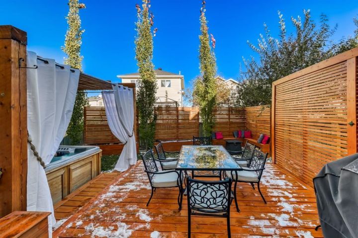 Welcome to this exceptional 2-storey home located on a quiet, family-friendly street in the desirable community of Royal Oak. This beautifully upgraded property blends smart home features, designer finishes, and outdoor luxury offering a unique lifestyle just steps from nature and top amenities. Inside, you’re greeted by a dramatic 18-ft entryway with wood beam accents and rich hardwood flooring. The open concept kitchen, dining, and living area is an entertainer’s dream featuring waterfall granite countertops, full-height cabinetry, upgraded hardware, and built-in wine and coffee stations with live edge wood shelving. A smart Samsung gas range, Bluetooth appliances, and LG ThinQ smart washer/dryer (with voice control compatibility) add true convenience. Upstairs, you will find 3 spacious bedrooms and an upgraded 4-piece bath that has access from both the primary bedroom and the hallway. The fully finished basement impresses with a spa like bathroom complete with in floor heating (app-controlled), Bluetooth light/speaker fan, heated/illuminated mirror, and double rain shower heads. The lower level is finished with luxury vinyl plank flooring, elegant arches, and limewash style painted walls for a designer touch. The basement living area can also be used as a 4th bedroom if needed as it is equipped with a sliding barn door, window, and large closet area. Step outside to a private backyard oasis: privacy walls double as garden beds and built-in seating around a fire area. A custom pergola, and a stunning Arctic Spa saltwater hot tub (ultra-efficient, Bluetooth speakers, waterfall, and Aquatremor therapy system) elevate your outdoor living. Bonus features of this home include garage loft storage, and central A/C. With easy access to the mountains, the Tuscany c-train station, Bearspaw Country Club, and all major roads, this location can't be beat. Book your showing today!