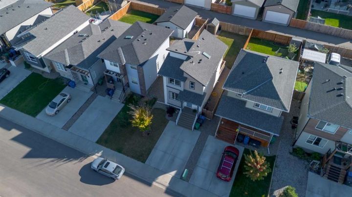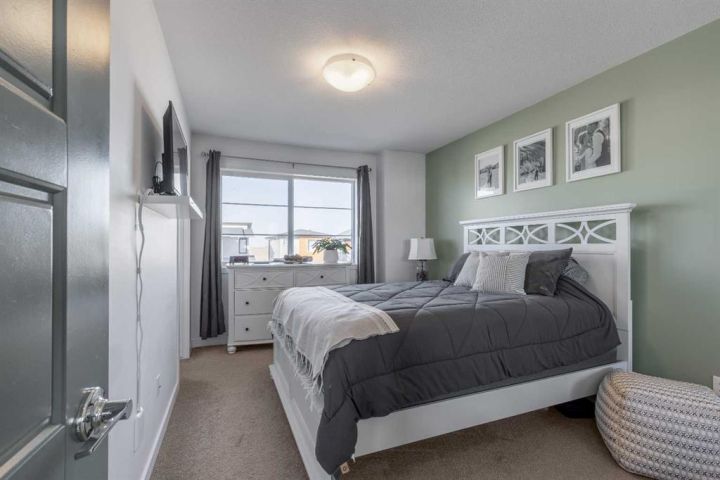 A gorgeous, fully finished 2 storey home that is nothing short of turn-key. This 4 bed, 3.5 bath home offers families a great place to start their real estate journey. With a double front parking pad, newly re-landscaped and graded, fully fenced yard and with alley access this is a dreamy combo! The main floor is bright, welcoming and offers modern finishes with a cozy feel. A custom fireplace with shiplap mantle, dining space that fits the whole family, quartz kitchen with island for food prep and warm cabinetry tie this entertaining space together. There's a half bathroom on the main floor and access to the back deck! Heading upstairs, there's a skylight in the stairwell, bringing in a ton of natural light. 3 bedrooms up, a 4 piece shared bathroom and 3 piece en-suite! The basement hosts a family room, storage space, 3 piece bathroom with soaker tub, fourth bedroom and laundry! This home is only a few short blocks from parks, playgrounds, lakes and the Legacy Regional Park. A perfect place to raise a family, enjoy peaceful evenings at home and explore all the neighbourhood has to offer!