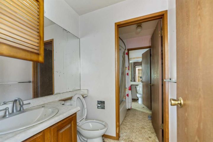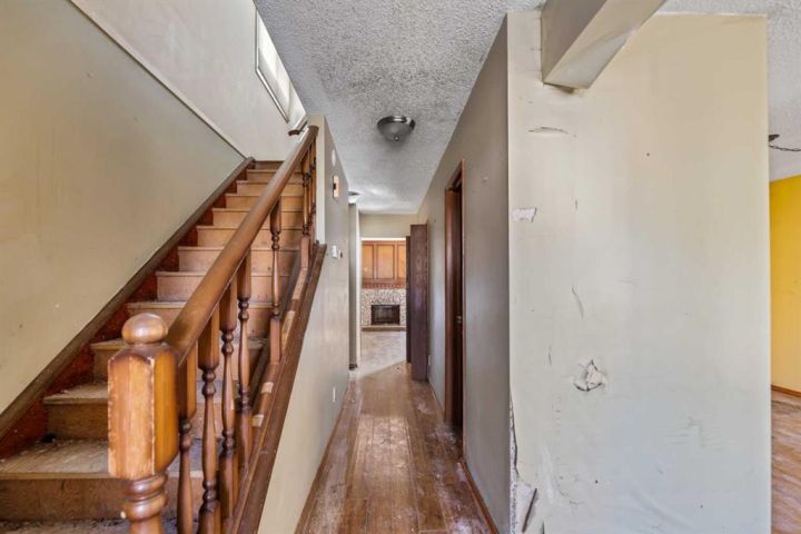 This two-storey home is located in the established community of Temple, close to schools, shopping, playgrounds, parks, and public transit. The property includes a single attached garage with a front driveway for added parking convenience. The main floor offers a spacious living room and dining area, along with a kitchen, breakfast nook, and a convenient two-piece bathroom. Upstairs you’ll find three bedrooms, including the primary bedroom with its own two-piece ensuite, as well as a full four-piece main bathroom. The backyard features mature trees and a deck, providing outdoor space with great potential for relaxation or future enhancements. This home is being offered as-is and presents an excellent opportunity for buyers looking to personalize a property to suit their own style and needs.