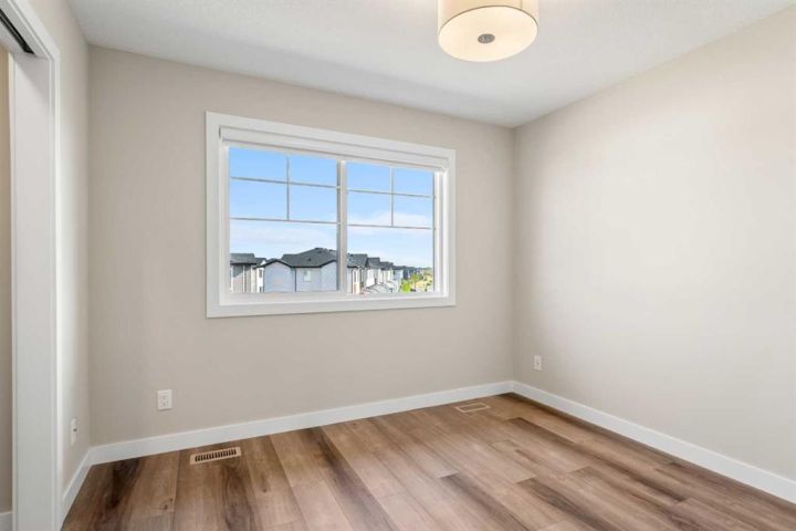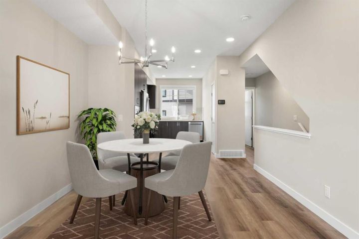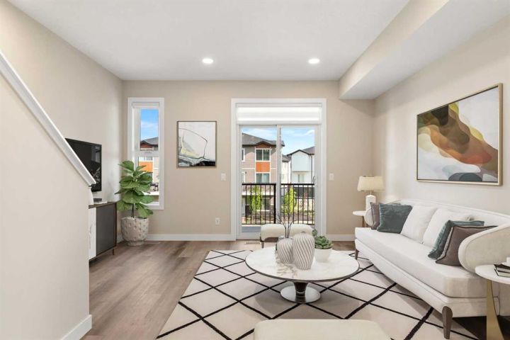 SHOWHOME GRAND RE-OPENING OCTOBER 11TH FROM 1-4PM *Photos are from a completed unit - some finished may vary and the entry level measurements are added to the main level measurements* Welcome to Chelsea Court, a beautifully designed two-bedroom, two-and-a-half-bathroom townhome nestled in the heart of Chestermere’s vibrant Chelsea community. This modern residence offers over 1000 sqft of thoughtfully laid-out living space, with an open-concept main floor that seamlessly integrates the kitchen, dining area, and living room—perfect for entertaining and everyday comfort. Large windows flood the space with natural light, enhancing the sleek finishes and warm tones throughout. The well-appointed kitchen features quartz countertops, rich cabinetry and stainless steel appliances. A convenient half bath on the main level rounds out this floor. Upstairs, the primary bedroom includes a private four-piece ensuite bathroom and a spacious closet, while the second bedroom and another full ensuite provide flexibility for a guest room, home office, or flexible living space. Laundry facilities are also located on this level for added convenience. Externally, this home includes an attached double tandem garage and a private second-level balcony—ideal for quiet morning coffees or evening relaxation. Residents enjoy access to a thoughtfully planned community, complete with walking paths, wetlands, and green spaces, all just steps from your front door. Chelsea Court offers maintenance-free living in a welcoming resort-style neighbourhood only five minutes from Chestermere Lake, local schools, parks, shops, and restaurants. It’s also just a short drive to Calgary and the East Hills Shopping Centre, making it easy to enjoy urban amenities alongside a serene, small-town setting. This meticulously crafted townhome by award-winning Trico Homes reflects modern tastes and high-quality construction. With its designer finishes, intentional layout, and unbeatable location, it provides an ideal lifestyle for a wide range of buyers—including first-time homeowners, downsizers, professionals, or small families. Don’t miss your opportunity to settle into this fabulous Chelsea Court townhome—where everyday ease, style, and a vibrant community converge.