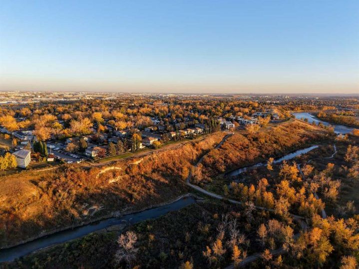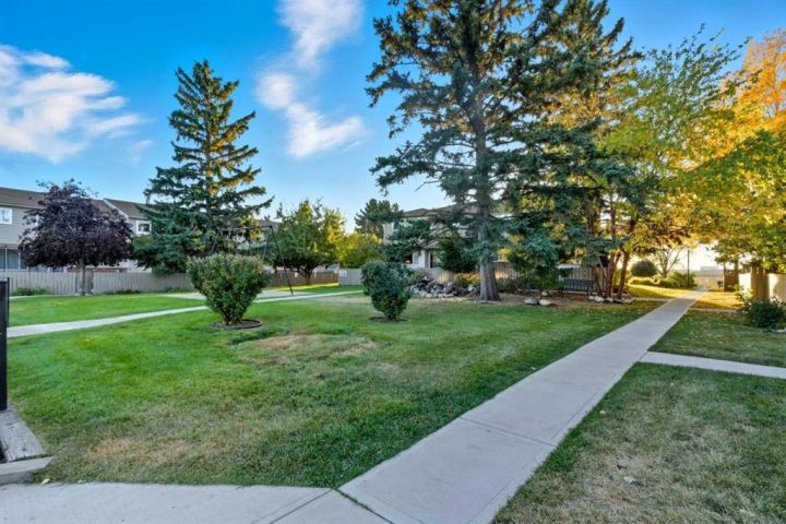 For anyone who is tired of the boxes being built across the city...and is looking for a true character home at an affordable price...then pay attention! This beautifully located 2 Story home with a fully finished basement has it's own private front yard overlooking a private play park and green space. Not only that...it backs onto ONE OF THE MOST GORGEOUS DOWNTOWN/BOW RIVER SUNSET SCENES this City has to offer | 3 Bedrooms Upstairs + Newer Second Level Carpet | 1.5 baths | Stylish All-White Kitchen w/New Quartz Countertops + New Dishwasher | Fully Developed Basement w/Wet Bar + 2025 Egress Basement Window | Large Storage Room | Laundry Room | PET-FRIENDLY COMPLEX | Unbeatable Location atop a redevelopment Green Line Community with direct access to beaver dam flats & bow river pathways. Your summer nights will never be the same. Step outside for an evening stroll and soak in views showcasing all this city has to offer. Watch the Stampede Fireworks after a family Bar-B-Que in your private front yard? Maybe a morning cup of coffee while the kids play in the park out front. This isn't just a new home to live in...this is a new life to live! Move-in-ready and filled with natural light, this charmingly nestled townhome is perfect for families, first-time buyers, downsizers seeking low-maintenance living without compromise. The spacious main floor welcomes you with a bright, comfortable and very large living area designed for gathering and relaxation in front of your custom made feature wall.. An inviting dining space connects seamlessly to the white, timeless kitchen featuring ample cabinetry, generous counter space and a subway tile backsplash for a clean, classic look. An updated powder room adds everyday convenience and elegance. 3 bedrooms on the upper level provide plenty of flexibility for family life, guests or a home office, complemented by an updated 4-piece bathroom. Downstairs, a large recreation room offers versatility for media, games, fitness, work or play complete with a built-in bar for easy drink and snack refills, along with ample storage. Step outside to your private fenced yard, where mature landscaping, a tranquil pond and a deck create a peaceful outdoor retreat ideal for summer nights or quiet mornings. Riverside Gate is a well-managed, pet-friendly complex known for its welcoming community feel and beautifully maintained shared courtyards with playgrounds and green spaces. They really don't make em like this anymore. Assigned owner parking and tonnes of street parking ensure easy access for you and your guests. From your doorstep, enjoy direct access to the scenic Bow River pathway network and the natural beauty of Beaver Dam Flats, perfect for walking, cycling and year-round exploration. This home offers quick access to schools, parks, shopping, transit and Deerfoot Trail, with the future Green Line LRT station nearby and downtown Calgary just a 10-minute drive away. Don't wait! Call your realtor and book an showing today!