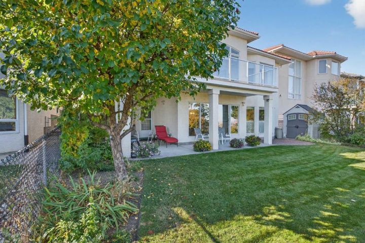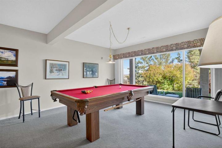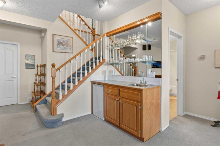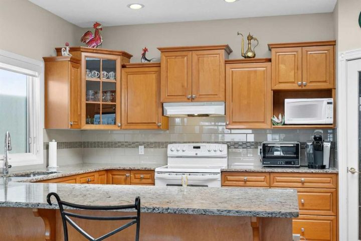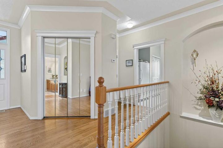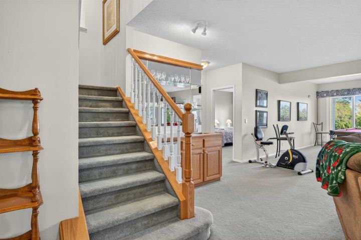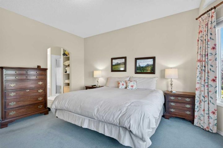 Surrounded by breathtaking views of the 16th hole of the Hamptons golf course is this lovingly maintained bungalow here in exclusive Hamptons Heights just minutes to the clubhouse & neighbourhood shopping. Original owners of this mint condition estate home, which enjoys beautiful hardwood floors & central air, 3 bedrooms + den, 2 fireplaces & 2 fantastic decks to take in the glorious wide views. Complemented by expansive 9ft ceilings & picture windows, you’ll love the inviting & airy feel of the main floor with its stunning living room with 11ft stepped ceilings & 3-sided fireplace, elegant open concept formal dining room & sun-drenched maple kitchen with skylights & quartz countertops, dining nook with access onto the L-shaped balcony, walk-in pantry & white/stainless steel appliances. The relaxing owners’ retreat has a big bay window with views of the golf course, great-sized walk-in closet & jetted tub ensuite with double vanities, separate shower & built-in shelving. The beautifully finished walkout level – with infloor heating, is finished with 2 large bedrooms & another full bathroom, loads of extra space for storage & fantastic games/rec room with wet bar, stone-facing fireplace & built-in cabinets. Main floor also has a dedicated home office with built-in bookcases & laundry room complete with Maytag washer & dryer, sink & built-in cabinets. For your outdoor entertaining & relaxation, you’ve got a huge partially covered balcony (almost 300sqft) with natural gas line for your BBQ plus a covered 300sqft covered patio in the backyard, which is fully fenced & landscaped with winding gardens, mature shrubs & trees. Additional features include crown moldings, finished garage, red brick façade & clay tile roof, Hunter Douglas blinds, 2 hot water tanks, central vacuum system & storage shed in the backyard to store your gardening tools. Not-to-miss opportunity to make your home in one of the Hamptons most desirable locations, only a few short minutes to all community amenities (Hamptons School, tennis courts & sports fields), shopping at the Hamptons Co-op & Edgemont Superstore, plus quick & easy access to Crowfoot Centre & LRT, University of Calgary, major retail centers & downtown.