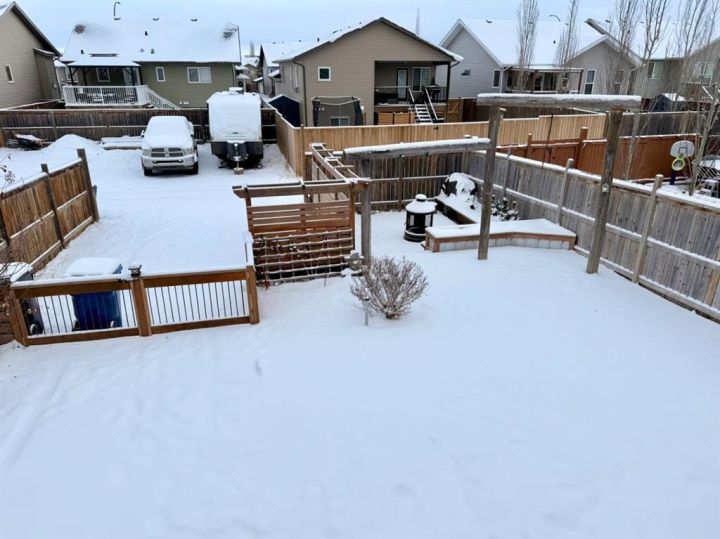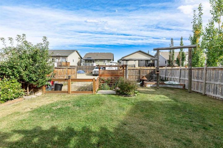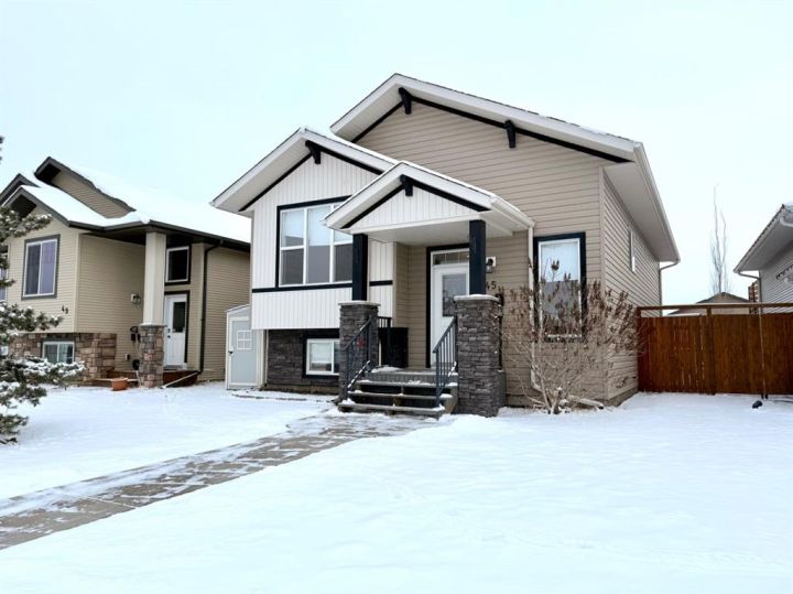 This inviting bilevel home is the perfect blend of function and location! Offering 4 bedrooms, 2 full bathrooms (including a private 4 piece ensuite in the primary), and an open floor plan designed for modern living, it checks all the boxes. Kitchen has a garden door leading to the East facing backyard. Warm and inviting, with a mix of laminate flooring and carpet. The fully finished basement provides a spacious family area 2 bedrooms,separate laundry area tucked away plus a rough-in for an additional bathroom, giving you room to grow. Step outside to the fully fenced yard, with an upper and lower deck ,landscaped and ready for summer fun with the kids or family pets, even adequate space for garden beds with rear parking for 2 vehicles.There is even a possibility for RV parking or building a detached garage. Ideally situated close to the new school, nearby parks, and local amenities, while keeping your commute simple with quick access to Hwy 2A and Hwy 2. A wonderful home in a family-friendly location awaits you and your family!