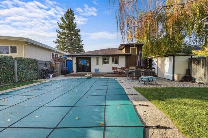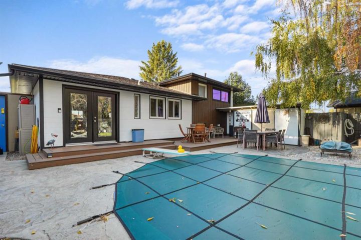 Welcome to this classically styled 3-level split offering the perfect blend of comfort, charm, and modern updates. With 4 bedrooms, 2 bathrooms, and a beautifully designed open-concept main floor, this home is ideal for families, professionals, or anyone looking to enjoy both indoor and outdoor living. Step into the open-concept main floor, where you'll find gleaming hardwood floors, a cozy gas fireplace, and a modern kitchen featuring stainless steel appliances and updated cabinetry—perfect for entertaining or quiet nights at home. The lower level has been thoughtfully transformed into a luxurious private primary suite, complete with a second fireplace, a spacious walk-in closet, and a recently renovated 4-piece ensuite. Enjoy spa-like features including a soaker tub, separate tiled shower, heated floors, and convenient in-suite laundry. The upper level offers three bright bedrooms and a full bathroom—ideal for children, guests, or flexible space like a home office or hobby room. From the dining area, walk out to your private backyard oasis, featuring a stunning 32’ x 16’ in-ground pool, composite decking, an outdoor change room, permanent holiday lighting, and lush professional landscaping—a dream setting for summer entertaining or quiet relaxation. The front yard offers beautiful curb appeal with a new front deck facing a nearby playground, and a professionally landscaped front yard that welcomes you home in style. This unique and well-cared-for property on the edge of the SugarBowl is ready for its next chapter—don’t miss your chance to make it yours. Book your private showing today!