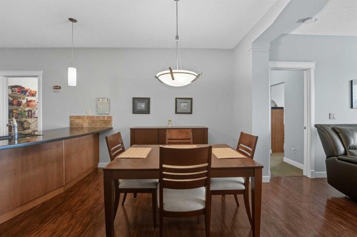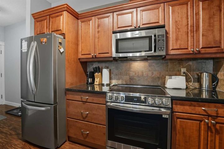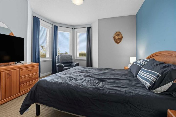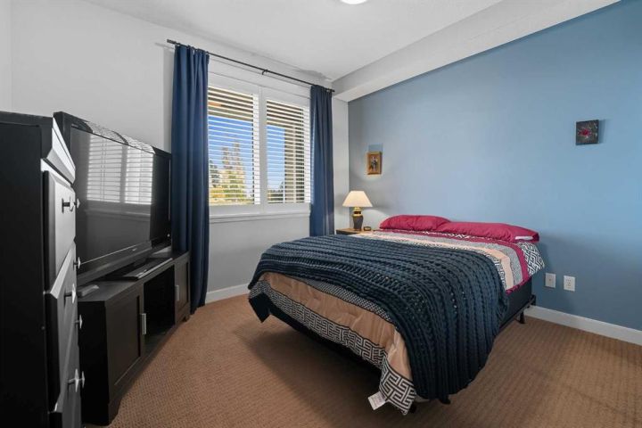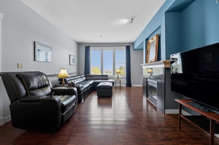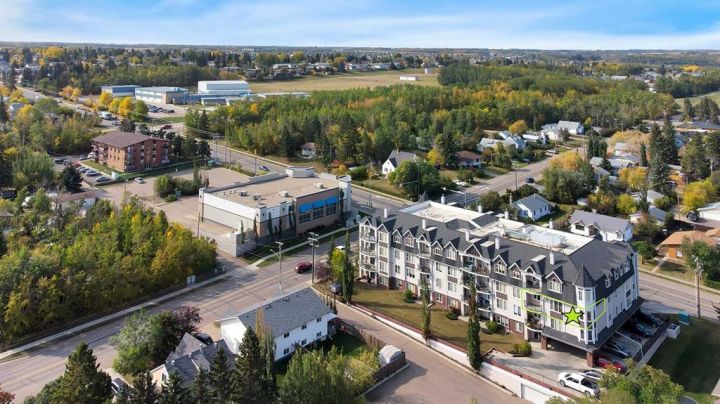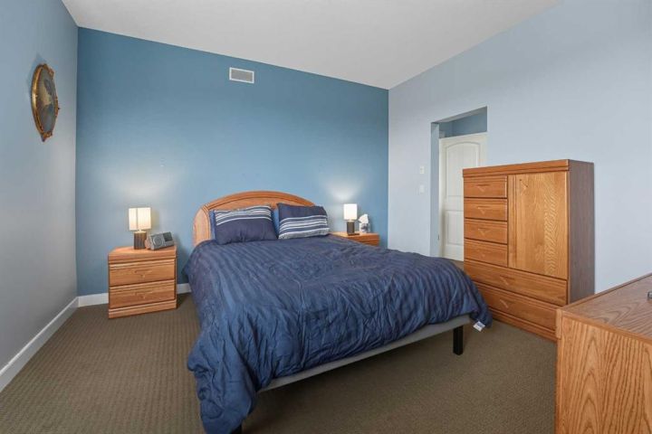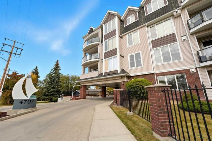 Luxury Downtown Condo – A Few Blocks from the Lake! Welcome to The Watermark, an upscale and beautifully maintained condo complex located in the heart of Sylvan Lake. This large corner unit, one of the largest in the building at 1,146 sq. ft., is situated on the quieter northeast side of the building. It features 2 spacious bedrooms and 2 full bathrooms, including a large soaker tub in the ensuite, offering a bright and functional open floor plan. The kitchen showcases granite countertops, an eating bar, and newer stainless steel appliances, while the living room is highlighted by a cozy gas fireplace. Enjoy the convenience of in-suite laundry with a stacked washer and dryer, leaving extra room for a pantry or even a freezer. The condo also includes one titled parking stall, and the well-kept exterior grounds add to the property’s appeal. Located just a few blocks to the Lakeshore Drive Promenade and downtown, close to schools, shopping, and amenities. Sylvan Lake offers endless summer fun with boating, swimming, and lakeside dining, and in winter, enjoy ice fishing, skating, and scenic snowy walks along the lake. Condo fees include heat. Whether you’re looking for a year-round residence or a vacation retreat, this beautiful condo combines comfort, convenience, and the best of Sylvan Lake living.