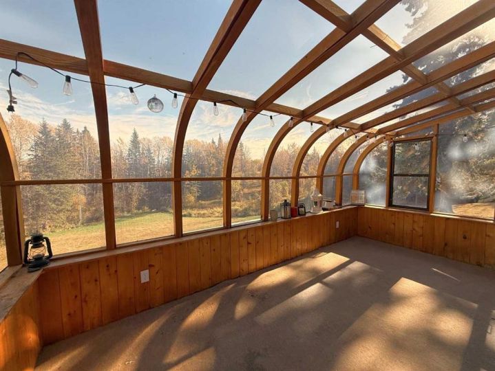 20.44 ACRES - This is what country charm looks like. Demonstrating quality workmanship, and built to withstand the tests of time. Offering almost 2000 sq ft of finished living space, plus just under 1800 sq ft of unfinished living space ready to be customized to fit your needs. Kitchen has plenty of counter space to accommodate meal prep for a large family. Both the kitchen and living room overlook the back yard and creek, with access to the attached sunroom and massive deck (on concrete piles). Main level has 2 bedrooms and bathroom, plus 2 more bedrooms and bathroom upstairs. Upstairs bathroom has a solid one-piece tub surround, so the you don’t need to worry about water damage when the kids start to splash. One bedroom on the main level has been converted into laundry for main floor access, but the hook-ups are still available to move them back to the basement. Walk-out basement is mostly unfinished for flexible use, with one bedroom and cold storage. Unfinished space above the garage could make an excellent lounge or rumpus room, accessible from both the garage and upstairs bedroom. Some upgraded windows, new sewer pump in 2025, and new asphalt shingles June 2025. Just imagine how much fun the kids would have tobogganing down the back yard in the winter, they could literally launch right from the deck. Great location, mostly pavement with just enough gravel to get you away from the noise of the highway, and close enough to crown land to quad from home.