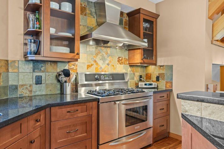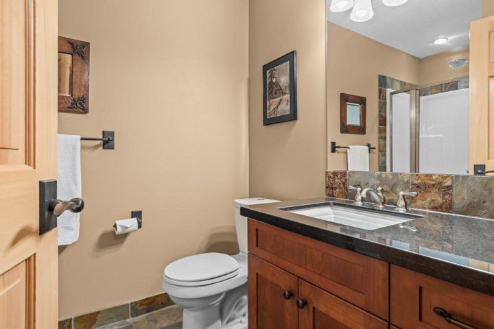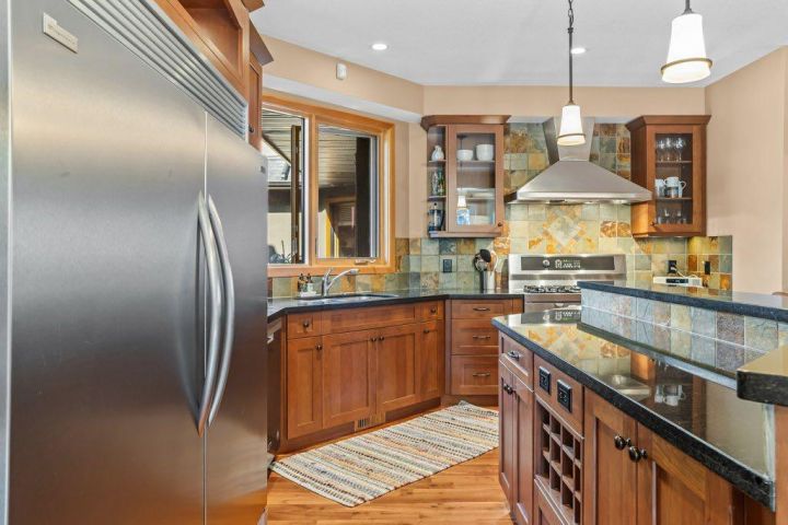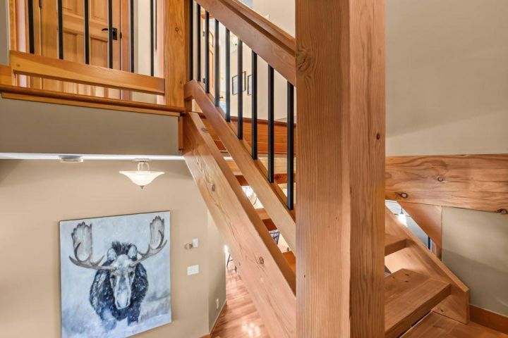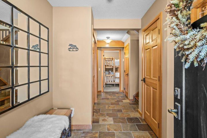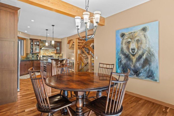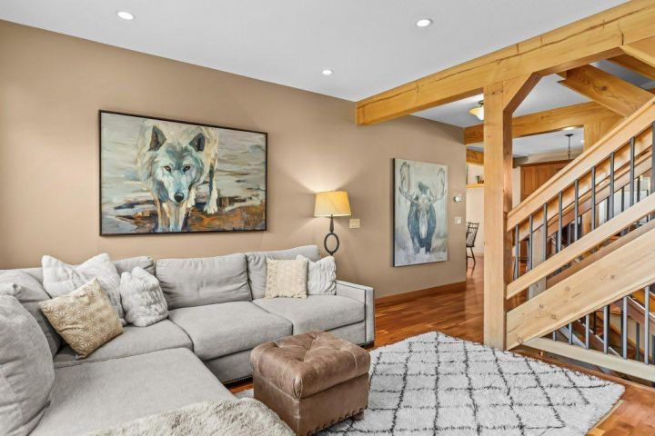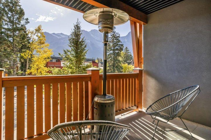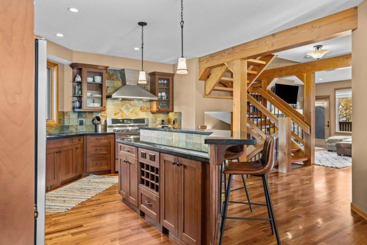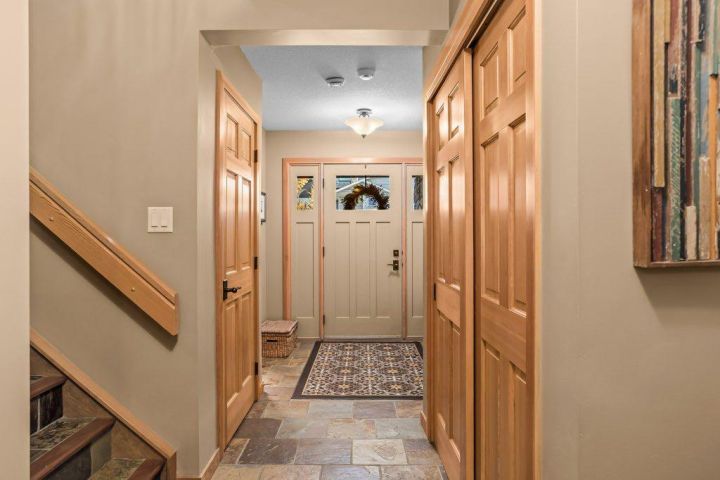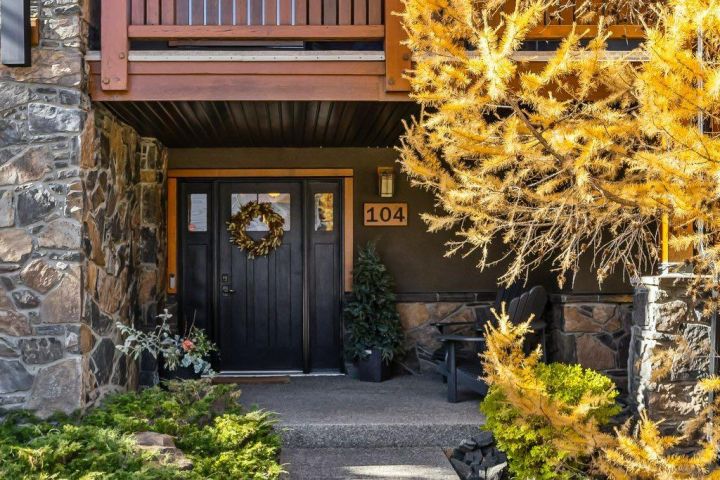 Immaculately maintained South Canmore townhome located steps from Downtown restaurants, shops and the Bow River walking trails. Perfect as a vacationer retreat, investment property or full-time living. This Elk Run Custom Home features 3 full baths, and 3 bedrooms. Four patios offer panoramic views of the Bow Valley from its South, East and West facing windows. The interior showcases exceptional craftsmanship with cherry hardwood flooring, floating stairs, custom cherry cabinetry, wood beams, granite countertops, and in-floor heating on the main level. The luxurious primary suite includes a steam shower and in-floor heating in the ensuite bath for a true spa like experience. Additional features include a single attached car garage equipped with a 220 volt outlet for an EV charger. Enjoy the warmth of the Rundle rock gas fireplace in the cozy living room or relax on one of the outdoor patios while taking in the stunning mountain scenery. Make this your home today.