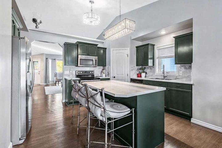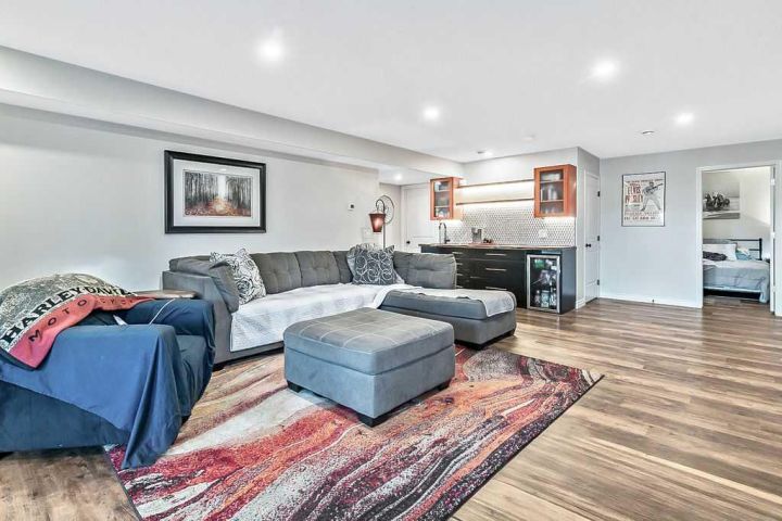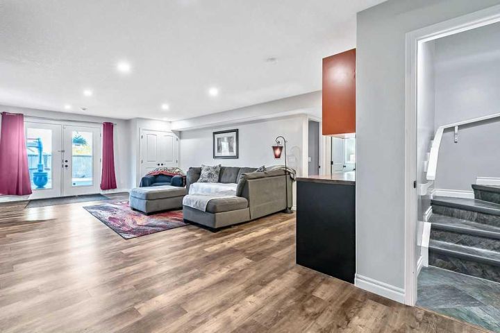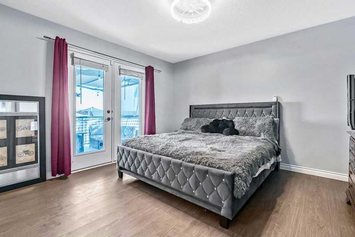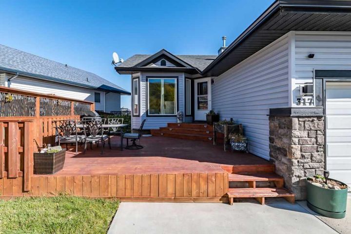 This gorgeous, FULLY DEVELOPED WALKOUT BUNGALOW sits on an expansive raised lot in a quiet location, offering PEACEFUL VIEWS of rolling hills and a treed farmer’s field. Built by the highly respected Woodmaster Homes, the property now features a newly completed walkout level developed by the builder, thoughtfully designed for comfort and versatility. The home welcomes you with a charming FRONT WOOD DECK, privately nestled and perfect for enjoying the tranquil natural setting across the street. Inside, you’ll find a spacious OPEN-CONCEPT living room with soaring VAULTED CEILINGS and LARGE WINDOWS that flood the space with natural light. The kitchen is a true highlight! Complete with STAINLESS-STEEL APPLIANCES, professional EPOXY COUNTERTOPS and BACKSPLASH, ISLAND SEATING, a CORNER PANTRY, and abundant NATURAL LIGHT. Adjacent, the dining area opens to a full UPPER DECK, ideal for outdoor entertaining. This home offers five spacious bedrooms and three full bathrooms. The master suite includes a WALK-IN CLOSET, PRIVATE ENSUITE, and enough room for a king-sized bed and dressers. Step out from the master bedroom onto a PRIVATE BALCONY, covered by a gazebo - your own serene retreat. Two additional bedrooms on the main level share a well-appointed 4pc bathroom. A convenient MAIN FLOOR LAUNDRY area adds to the home's functionality. The NEWLY FINISHED WALKOUT LEVEL is impressive, featuring two large bedrooms, each with WALK-IN CLOSETS, and a stylish 4pc bathroom with a DOUBLE VANITY. The family room is the heart of this level, showcasing a stunning WET BAR with a LIVE-EDGE WOOD COUNTERTOP, OPEN SHELVING, SOFT-CLOSE CABINETRY and a BAR FRIDGE - perfect for entertaining. Step out to the LOWER WOOD PATIO, built with 4x6 joists and screw piles, ready to support a hot tub (wiring already in place). Current owner pulled permits for a legal basement suite which would offer great flexibility. The furnace has dual temperature zones (main and lower level) for added comfort and efficiency. A newly constructed wood stairway along the side of the home provides easy access to the front yard. The property also includes a DOUBLE ATTACHED GARAGE and an EXTENDED DRIVEWAY, ideal for EXTRA PARKING. With LOW-MAINTENANCE LANDSCAPING, this home is perfect for both large families and empty nesters seeking move-in-ready convenience. Every detail has been completed - simply move in and enjoy the lifestyle!