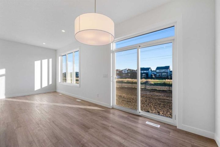 LUXURY LIVING | THE NADIA BY BROADVIEW HOMES | 1,635 SQFT | FRONT ATTACHED DOUBLE GARAGE | DESIGNER FINISHES THROUGHOUT Welcome to The Nadia — a stunning, brand-new half duplex by the acclaimed Broadview Homes, offering 1,635 sqft of beautifully designed living space with an emphasis on style, comfort, and functionality. From the moment you step inside, you're greeted by a bright and airy open-concept layout enhanced by soaring 9’ ceilings on both the main floor and basement, wide plank flooring, and large windows that flood the home with natural light. The chef-inspired kitchen is a true highlight, featuring granite countertops throughout, ceiling-height cabinetry, a walk-in pantry, and a premium stainless steel appliance package, including a gas range, hood fan, and built-in microwave. Perfect for entertaining or everyday living, the kitchen flows seamlessly into the spacious dining and living areas. Upstairs, you'll find three generous bedrooms, including a sophisticated primary bedroom with a walk-in closet and private ensuite. A well-placed bonus room provides the ideal space for a home office, media room, or play area, while convenient upper floor laundry adds everyday ease. Additional upgrades include a 200 AMP electrical panel, granite countertops in all bathrooms, and a front-attached double garage with full driveway. With exceptional craftsmanship and thoughtful design, The Nadia offers a truly elevated living experience — combining modern luxury with everyday practicality