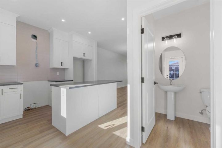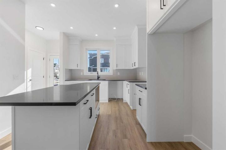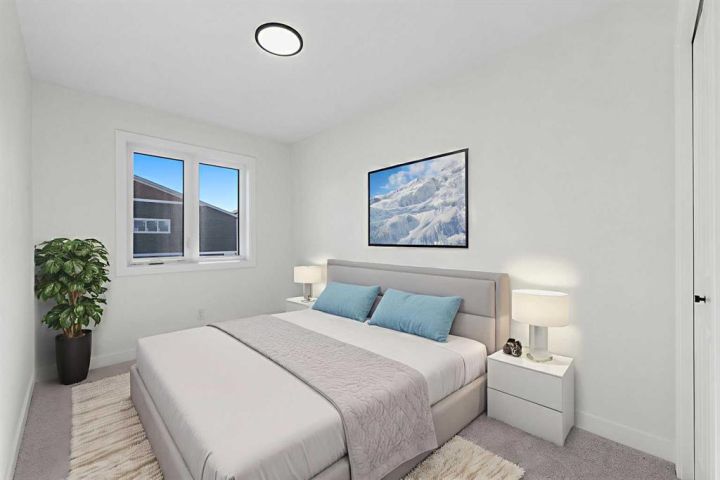 ** Move-In Ready | The Newport IV by Broadview Homes | 1,382 SqFt | 3 Bed, 2.5 Baths ** Welcome to the Newport IV by Broadview Homes — a beautifully designed brand new, move-in ready home offering 1,382 square feet of refined living space with 3 bedrooms and 2.5 bathrooms. Perfectly tailored for modern living, this home combines elegant finishes with functional design in a bright and open layout. The main level features 9’ ceilings that create a spacious, airy feel throughout. A sunlit Great Room welcomes you in and flows seamlessly into the dining nook and stylish kitchen. Thoughtfully designed for both everyday comfort and entertaining, the kitchen showcases a large central island, pot lights, and high-quality cabinetry by Wildwood Cabinets, complete with soft-close doors and drawers. The open-concept layout ensures effortless flow and connection between living spaces. Upstairs, the private primary bedroom offers a peaceful retreat with a walk-in closet and a well-appointed ensuite bathroom. Two additional bedrooms are generously sized and share access to a sleek main bathroom, while the convenient upstairs laundry makes everyday living even more effortless. Crafted with care and quality, this home includes high-efficiency, low-maintenance 100% vinyl windows, an engineered floor system, superior carpet, and a wide selection of luxury vinyl plank flooring and tile in all wet areas. An optional gas fireplace with tile surround adds warmth and style to the main living space. Designed with future potential in mind, this home is also ready for a legal basement suite (subject to city approval). It features a separate side entrance, 9’ basement ceilings, kitchen sink and laundry rough-ins, and a second furnace with HRV system—making it ideal for a mortgage helper or multigenerational living. Located in a desirable new community, this move-in ready home offers an exceptional opportunity to enjoy the quality, style, and peace of mind that comes with owning a brand new Broadview Home. Schedule your private showing today and experience the best of modern living!