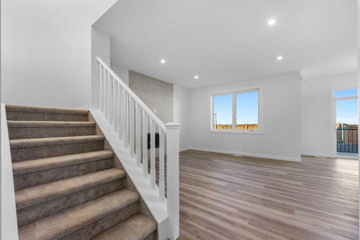 Luxury Living Redefined – The Meritt III by Broadview Homes Welcome to The Meritt III, a beautifully crafted home by Broadview Homes, offering 2,087 sq. ft. of upscale, thoughtfully designed living space. With 3 bedrooms, 2.5 bathrooms, and a triple car garage, this home perfectly balances luxury and practicality for modern family life. Step inside through the stunning gel-stained fiberglass front door and be greeted by a light-filled, open-concept main floor. The chef-inspired kitchen is a showstopper with 42” upper cabinets complete with crown molding and soffit to the ceiling, soft-close doors and drawers, and a full suite of stainless steel appliances, including a built-in microwave and designer hood fan. A walkthrough pantry leads directly to the mudroom and interior garage access, making grocery runs effortless. The kitchen flows seamlessly into a spacious Great Room and dining nook, perfect for both entertaining and everyday living. Just outside, a rear deck invites you to extend your living space into the outdoors—ideal for summer evenings and weekend gatherings. Upstairs, you’ll find a large bonus room for family movie nights, a convenient laundry room with ample space for storage and organization, and two generous secondary bedrooms. The primary retreat is a serene escape, complete with a spa-inspired 5-piece ensuite featuring dual vanities, a soaking tub, tiled walk-in shower, and private water closet. The basement offers 9’ ceilings and a separate side entrance, providing incredible potential for future development or an income suite(with city approval). A 200 AMP electrical panel and 2-stage high-efficiency furnace ensure long-term performance and energy efficiency, while designer tile in the ensuite, main bath, and laundry adds a refined finish throughout. This is more than just a home—it’s your next chapter, elevated. Experience the unparalleled quality and style that only Broadview Homes can deliver. Schedule your private showing today—your dream home awaits