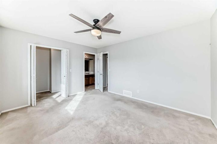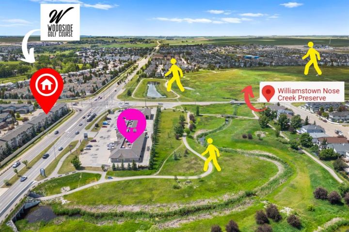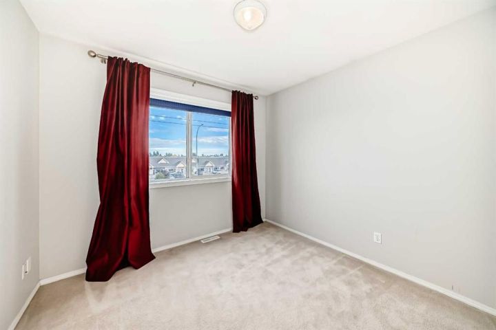 This beautifully maintained 2-storey townhouse offers over 1,200 sq ft of warm, inviting space at a price point that makes homeownership accessible—ideal for first-time buyers ready to stop renting or investors seeking solid value. Step inside to discover a bright, open layout flooded with natural light from large windows and PATIO DOORS that create an airy, welcoming atmosphere. The spacious living room features BRAND NEW CARPET underfoot, a cozy GAS FIREPLACE framed by a custom BUILT-IN WALL UNIT. The kitchen is designed for real life—AMPLE CABINETRY, full-sized appliances, and a breakfast bar that makes morning coffee or meal prep feel effortless. The separate dining area is perfect for family dinners, game nights, or those moments that matter most. Upstairs, three generously sized bedrooms await, including a bright primary suite with a walk-in closet that offers more space than you'd expect and convenient Jack-and-Jill access to the 4-piece bathroom. A versatile LOFT-STYLE NOOK adds flexibility—your home office, reading corner, or creative space. The unfinished basement is a blank canvas with laundry, WATER SOFTENER, rough-in plumbing for a future bathroom, and plenty of potential for an extra bedroom, recreation area, or storage to suit your lifestyle. With an ATTACHED SINGLE GARAGE and full driveway pad, parking is never a concern. Plus, you're steps from Airdrie's pathway system, Williamstown Nose Creek Nature Preserve, playgrounds, Airdrie BMX Park, Woodside Golf Course, shopping, and dining—everything you need, right at your doorstep. This is your opportunity to own an affordable, well-cared-for home in Willowbrook with room to make it your own.