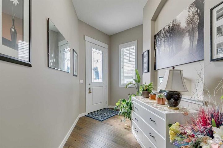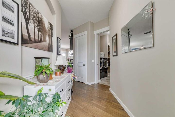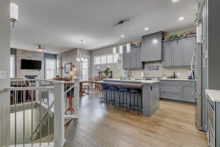 Welcome to a home where thoughtful craftsmanship, timeless finishes, and intelligent design come together in perfect harmony. Located in a peaceful, family-friendly neighbourhood, this stunning McKee-built bungalow offers over 1,400 sq ft of main floor living and a partially finished basement that’s already prepped with drywall, luxury vinyl plank flooring, and Dricore subflooring—ready for your finishing touches. Step inside and be greeted by soaring 10’ ceilings and engineered hand-scraped hardwood floors that create an instant sense of space and elegance. The custom kitchen is truly the heart of this home, featuring painted cabinetry, quartz countertops, a gas stove with a showpiece custom hood fan, built-in wood shelving, and a matching island eating bar. A walk-through pantry offers ample storage and everyday convenience. The open-concept living room includes a cozy gas fireplace and bright windows that flood the space with natural light, while the dining area is accented with a transom window for added architectural interest. With two spacious bedrooms and two full bathrooms on the main floor, this home is equally ideal for growing families or downsizers looking for one-level living. The primary bedroom is a peaceful retreat that easily accommodates king-sized furniture and includes a luxurious 5-piece ensuite complete with double vanity, soaker tub, separate shower, and a generous walk-in closet. A dedicated main floor laundry room adds convenience, and the front-attached garage comes outfitted with a high-end Gladiator organization system—ideal for anyone who appreciates a tidy space. Step outside to a beautifully landscaped and fenced backyard that backs onto a rear lane, offering extra privacy and versatility. Invisible screens on the front and back doors allow you to enjoy fresh air without the bugs, and a Kinetico water system adds another level of comfort and quality. This is a rare opportunity to own a well-built, move-in-ready bungalow by one of the most trusted local builders. Whether you're relaxing at home or entertaining guests, this property offers the lifestyle you've been dreaming of. Don’t wait—book your private showing today and make this stunning bungalow your next home!