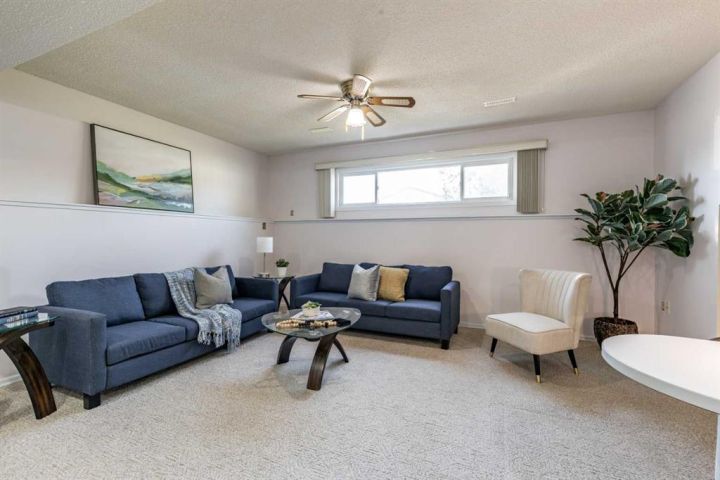 Affordable Family Home in Rossglen! Welcome to this inviting 4 bedroom, 2 bathroom bi-level located in a quiet Rossglen neighbourhood. Step inside to a bright and spacious main floor featuring a large living room that flows seamlessly into the dining area and kitchen. The kitchen offers plenty of white cabinetry and ample counterspace - perfect for busy family life or entertaining guests. From the dining room, enjoy direct access to the large covered deck overlooking a fully fenced and private backyard complete with underground sprinklers and garden beds - ideal for kids, pets, or summer gardening projects. The main level also includes two comfortable bedrooms and a full four-piece bathroom. Downstairs, the fully finished basement adds excellent living space with two additional bedrooms, a three-piece bathroom, good sized family room with built-in desk/homework station, and laundry room with storage. There's plenty of parking here with a detached oversized single garage plus a convenient front driveway. Noteworthy updates in recent years include vinyl windows, doors, furnace, AC, and shingles - so the big ticket items are already taken care of! Add your own personal touches and finishing style to make this a wonderful family home for years to come. Located close to schools, shopping, playgrounds, and extensive walk & biking trail systems, this home offers both comfort and convenience in a wonderful neighbourhood.