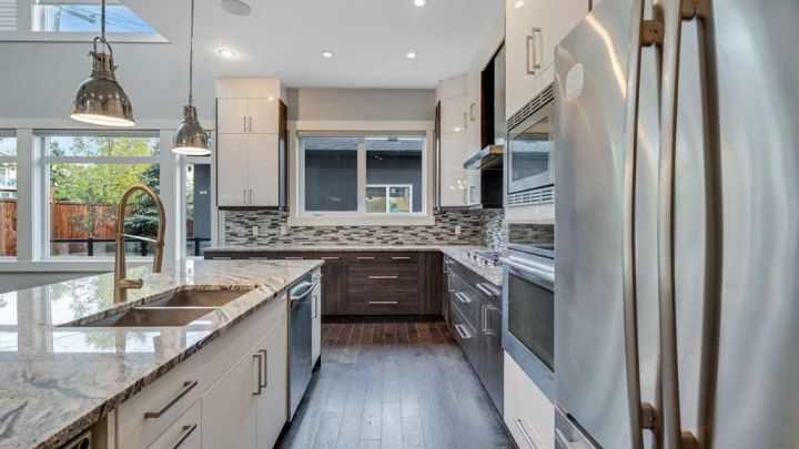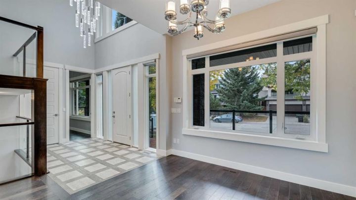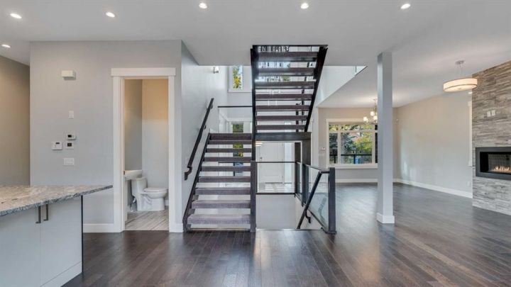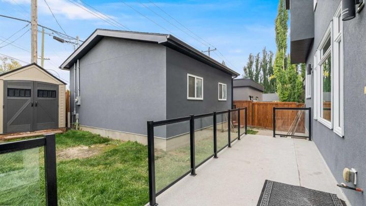 **Open House Oct' 18 Sat 12-3pm, 19-Sun-1-4pm**Masterpiece of Modern Elegance in Parkdale Nestled just steps from the serene Bow River pathways and the lush beauty of Elbow Park, this exquisite residence offers the perfect balance of nature, luxury, and urban convenience. Ideally situated near the Alberta Children’s Hospital, Foothills Hospital, and Market Mall, every essential—whether shopping, recreation, or emergency care—is mere minutes away. Behind the property, tranquil walking and cycling trails invite you to unwind and reconnect with the outdoors. Set on a generous 45-foot lot in Calgary’s highly sought-after inner-city enclave of Parkdale, this stunning stucco home is a showcase of architectural sophistication and exceptional craftsmanship. Spanning over 4,000 sq.ft. of opulent living space, including 2,573sq.ft. above grade, it features five spacious bedrooms and four-and-a-half luxurious baths. From the moment you enter, the home’s grandeur is undeniable—beginning with a soaring 19-foot foyer, beautifully tiled floors, and a dramatic open-riser staircase that exudes modern artistry. Expansive windows flood the open-concept interior with natural light, highlighting fine finishes and elegant design details throughout. The main living area is anchored by a sleek gas fireplace, offering both warmth and sophistication—a perfect setting for relaxed evenings or formal gatherings. The chef-inspired kitchen is a true statement of luxury, boasting a large granite island with breakfast bar, two-tone custom cabinetry, a built-in wine cooler, and an elite JennAir appliance package. French doors lead seamlessly to an oversized patio, ideal for al fresco dining and entertaining, complete with a rough-in BBQ gas line and integrated sound system. A spacious main-floor office or flex room, along with a refined powder room, completes this impressive level. The upper floor unveils a private master retreat that redefines comfort and elegance. Featuring a west-facing balcony, a romantic two-sided fireplace, and a spa-worthy ensuite with a freestanding soaker tub, glass-enclosed shower, and bespoke walk-in closet, this suite is designed for pure relaxation. Two additional bedrooms—one with its own ensuite—plus a stylish full bath provide exceptional accommodation for family or guests. The fully developed lower level extends the home’s luxurious living with a vast recreation and media area, two additional bedrooms, and a full bath. A remarkable highlight is the legal basement suite with in-floor heating and a private entrance, offering both comfort and versatility—ideal for extended family, guests, or potential rental income. Additional features include a central vacuum system, built-in audio throughout all three levels, and advanced exterior security cameras for peace of mind. Every element of this residence has been thoughtfully curated to offer a lifestyle of refined elegance, comfort, and modern sophistication—all within one of Calgary’s most desirable riverside communities.