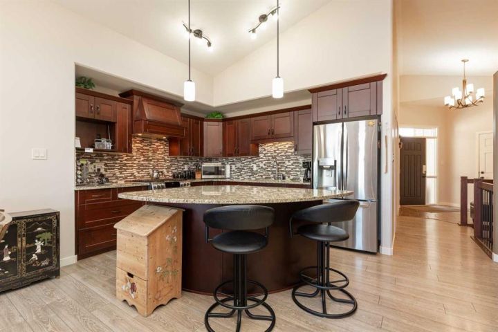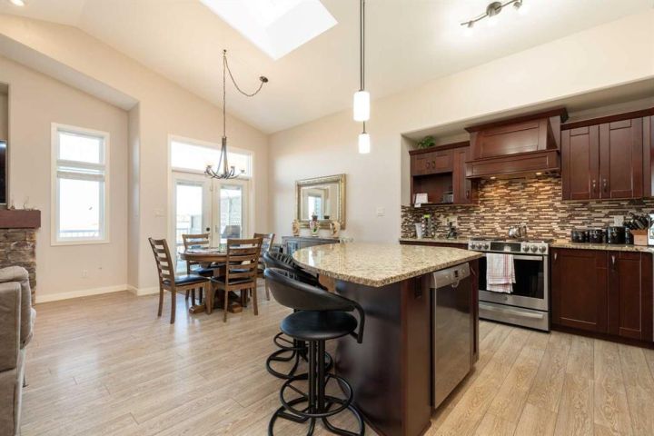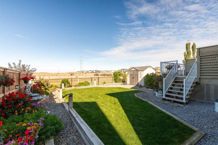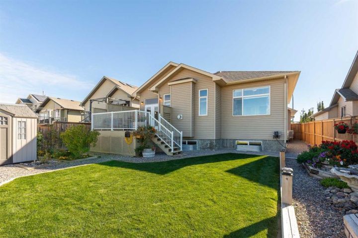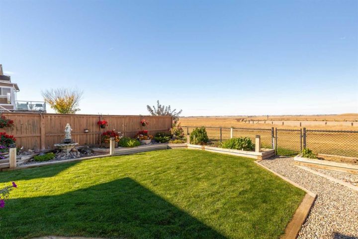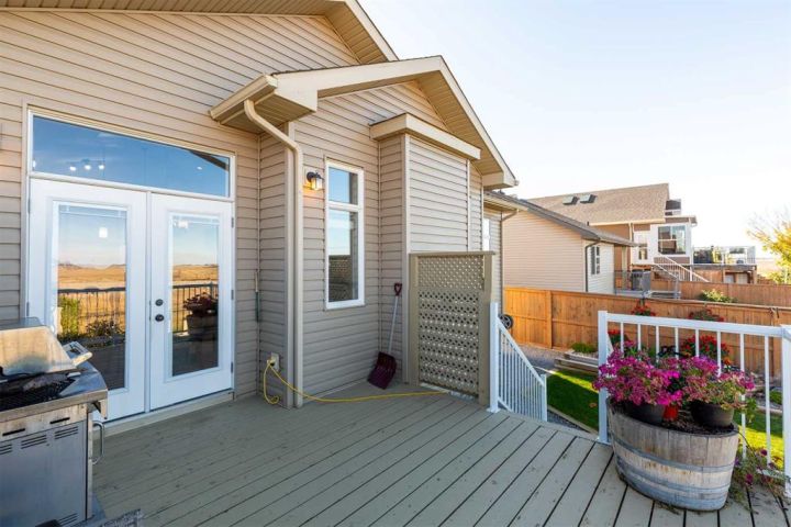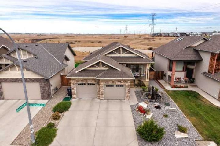 Experience stunning coulee views from this beautiful bungalow located in the highly sought-after community of Legacy Ridge. This home backs directly onto the coulees and Alexander Wilderness Park, offering privacy, scenery, and walking trails right from your backyard. Inside, you’ll find a bright, open-concept main floor featuring granite countertops, soft-close cabinetry, and a gas range in a kitchen designed for both style and function. The spacious dining area flows seamlessly into the living room, where large windows capture panoramic views and a gas fireplace creates a warm, inviting atmosphere. The main floor also includes two bedrooms, one-and-a-half bathrooms, and main-floor laundry conveniently located off the primary suite. The primary bedroom offers stunning coulee views, a walk-in closet, and a three-piece ensuite. Downstairs, the fully finished basement expands your living space with a large family room, two additional bedrooms, a full bathroom, a home office/den, and ample storage. The 22x24 heated garage provides plenty of room for your truck and is equipped with a gas heater and central vac. Outside, the property has been professionally landscaped front and back for easy maintenance. The front yard features beautiful stonework, mature shrubs, and a striking stone fountain, while the backyard includes raised flower beds, underground sprinklers, and the perfect backdrop of the coulees. Located close to elementary schools, shopping, and parks, this home combines natural beauty, thoughtful design, and everyday convenience — a rare find in Lethbridge for the price. Check out the Youtube tour and book your showing today!