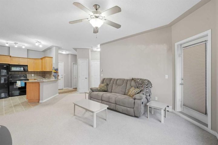 This immaculate condo is move-in ready and beautifully decorated in warm, neutral tones. The open floor plan features a spacious living area, bright dining space, and a functional kitchen complete with maple cabinetry, black appliances, and an over-the-range microwave. The thoughtful layout offers excellent privacy with the two bedrooms located on opposite sides of the unit, each with its own full bathroom. The primary suite includes a walk-in closet and ensuite bath. Step outside to your private patio, which also provides convenient access to your storage room. This home includes **titled underground parking** for added comfort and security. Enjoy an impressive list of building amenities — a fully equipped gym, steam room, games room, theatre, hair salon, party room, and tennis court. The beautifully landscaped grounds feature scenic walking paths and ponds, perfect for relaxing strolls. Located close to shopping, services, and public transit, this complex also offers ample visitor parking. A truly fantastic home that must be seen to be appreciated!