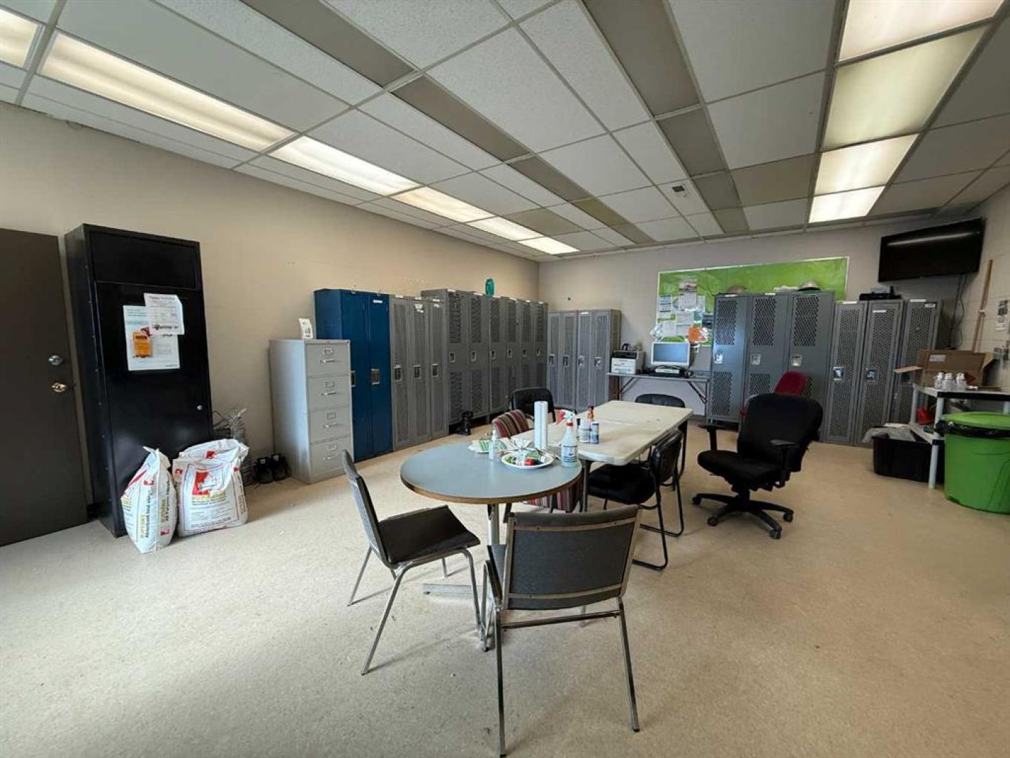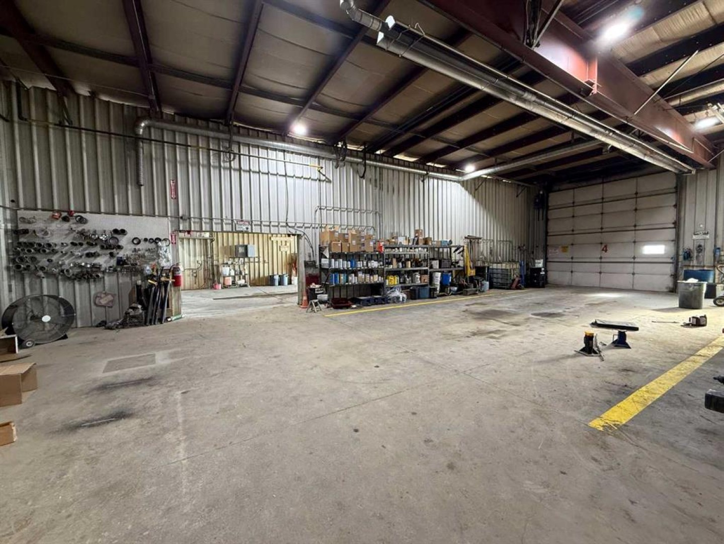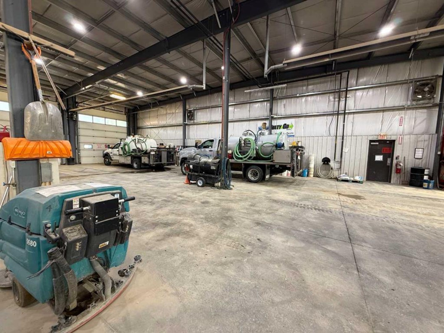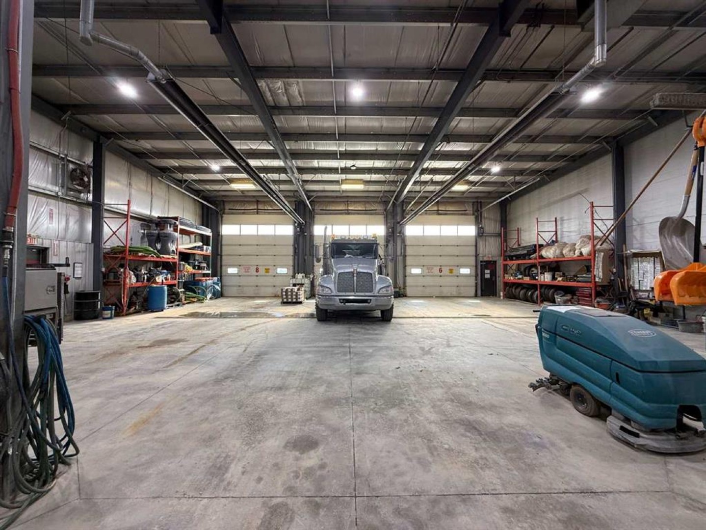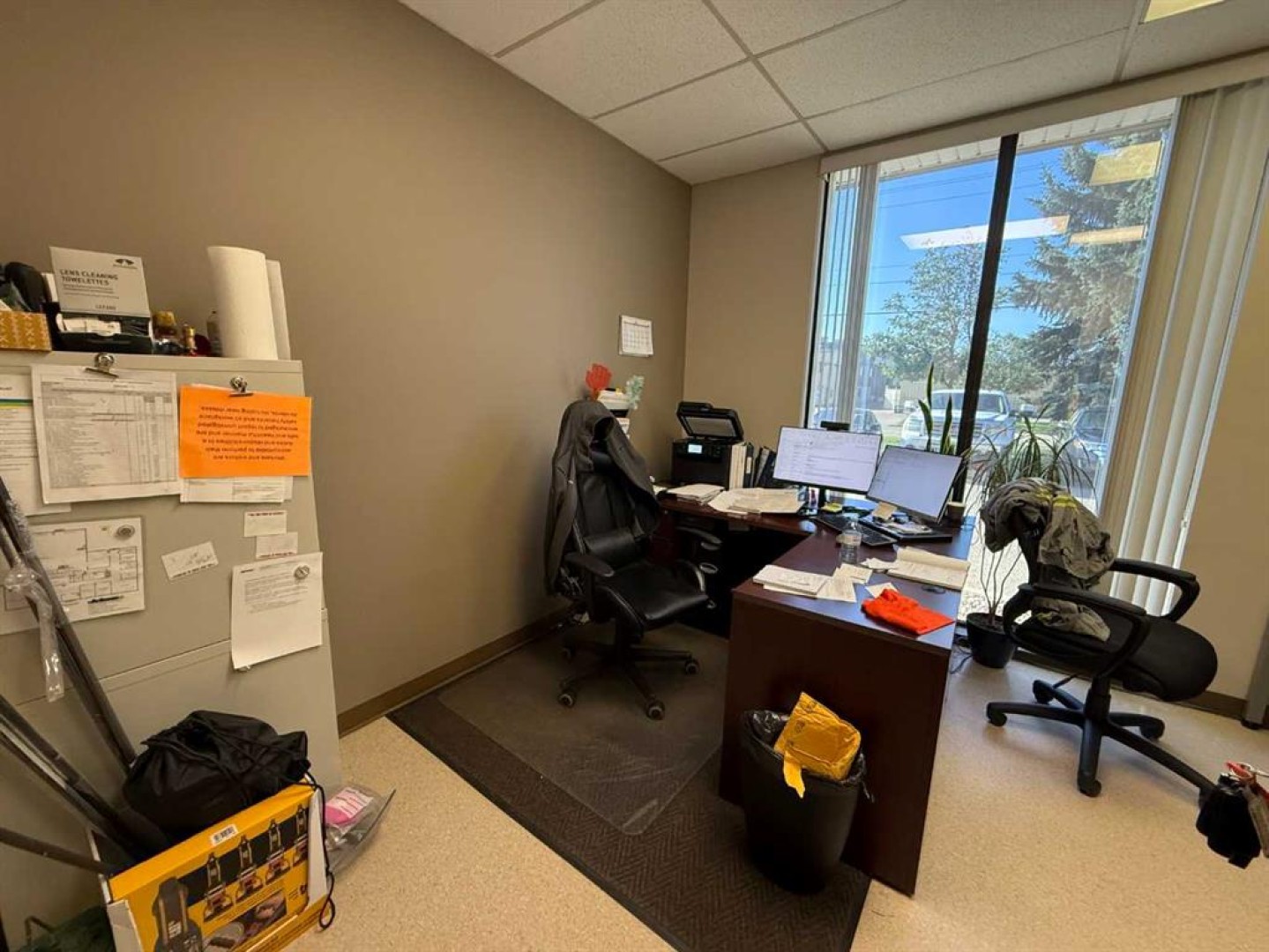 Well-positioned in Edgar Industrial, this freestanding industrial building offers a versatile combination of office, shop, and yard space. The air-conditioned office component includes a spacious reception area, boardroom, staff kitchen with sink and dishwasher, copy room, two washrooms, and a janitor’s closet with mop sink—designed to support both administrative and operations teams. The shop is divided into two functional areas, both outfitted with upgraded LED lighting. A drive-in wash bay and three 100’ drive-thru bays in the north shop provide efficient access and workflow. The exterior features a fully powered, graveled, and well-lit yard with secure gated access and excellent drainage tied into the adjacent City storm pond. Located just off Highway 11A with quick access to Taylor Drive, the property also benefits from high exposure along Highway 11. This site offers strong logistical advantages for industrial users needing space, visibility, and yard capability. Additional rent is $4.42 PSF.