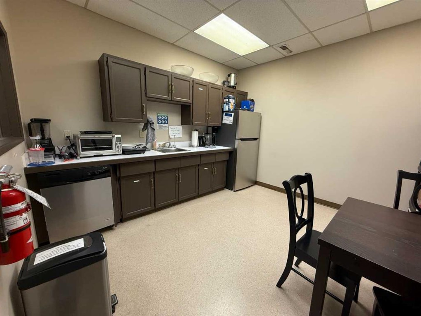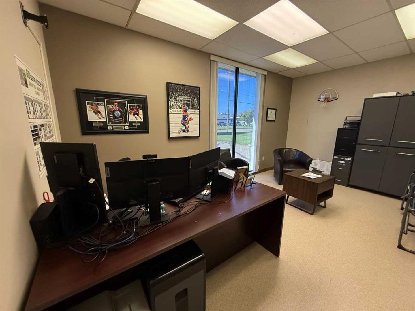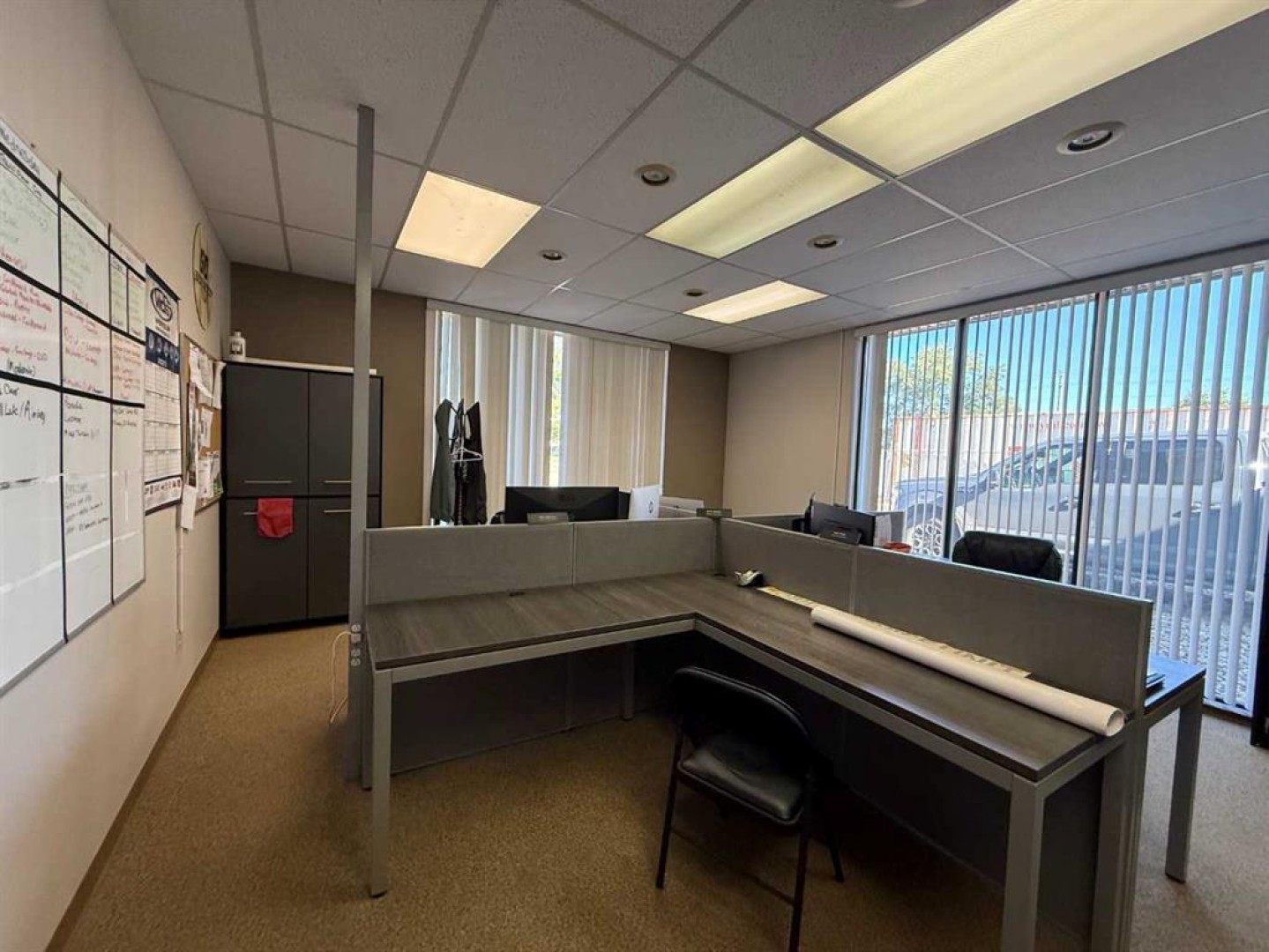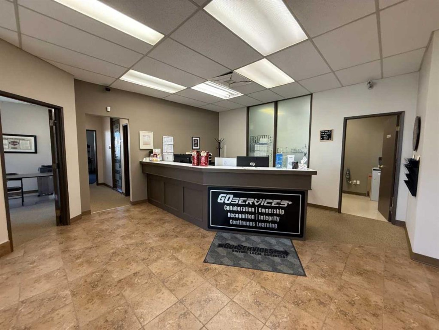 Well-positioned in Edgar Industrial, this freestanding industrial building offers a versatile combination of office, shop, and yard space. The air-conditioned office component includes a spacious reception area, boardroom, staff kitchen with sink and dishwasher, copy room, two washrooms, and a janitor’s closet with mop sink—designed to support both administrative and operations teams. The shop is divided into two functional areas, both outfitted with upgraded LED lighting. A drive-in wash bay and three 100’ drive-thru bays in the north shop provide efficient access and workflow. The exterior features a fully powered, graveled, and well-lit yard with secure gated access and excellent drainage tied into the adjacent City storm pond. Located just off Highway 11A with quick access to Taylor Drive, the property also benefits from high exposure along Highway 11. This site offers strong logistical advantages for industrial users needing space, visibility, and yard capability. Additional rent is $4.42 PSF.