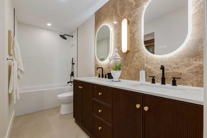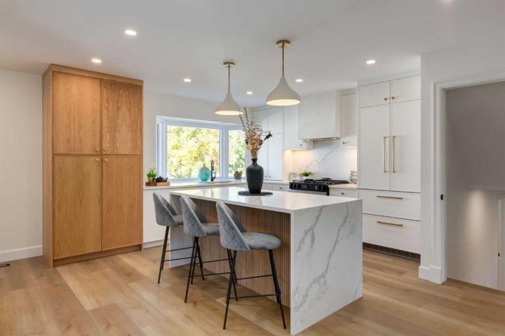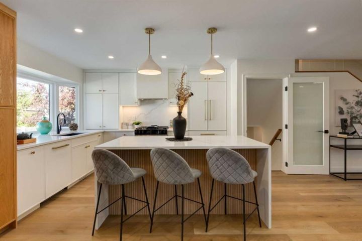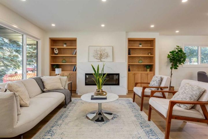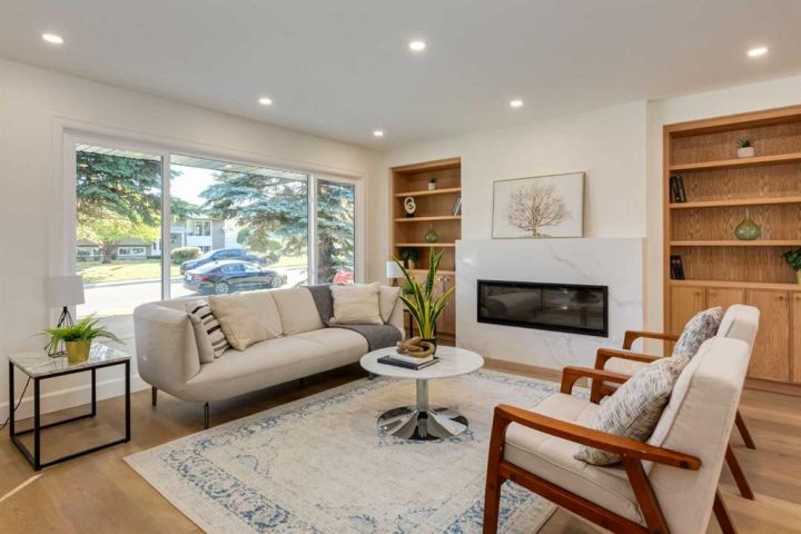 Not a detail overlooked in this stunning and fully renovated 4-level split home in the sought-after lake community of Lake Bonavista. Offering 2,741 SF of thoughtfully designed living space with 5 bedrooms, 3 bathrooms and an oversized double detached garage (24'x24'). Immediately you will love the striking curb appeal with crisp white brick and siding accented by black windows, soffits and fascia. Inside, an abundance of natural light highlights the contemporary design and upscale craftsmanship. At the center of this home is the gourmet kitchen, designed for both function and style. It boasts a large island with a breakfast bar and waterfall quartz counter, extensive cabinetry and counter space, undercabinet lighting, and a high-end appliance package, including a gas stove. The spacious main floor also offers an open-concept dining area, living room with custom built-ins and cozy gas fireplace and rear entry mud room with built-in storage. Upstairs you will find the primary suite with a show stopper walk-in closet with laundry and a spa-like 5 piece ensuite. A second bedroom and a beautifully designed 4-piece bathroom complete this level. The fully developed basement is the perfect space for entertaining or hosting guests. It includes a family room, recreation room, 3 additional bedrooms, a gorgeous 3 piece bathroom and a second laundry room making it an ideal retreat for family or overnight visitors. The beautifully landscaped backyard is fully fenced and gives ample space for summer enjoyment on the expansive concrete patio (27'x22') and direct access to the oversized double detached garage. with an EV plug-in. Don't overlook the central AC for those hot summer days! Lake Bonavista is a truly unique and sought-after community offering private lake access for year around enjoyment as well as schools, shopping, and parks all within close reach. This home is truly a MUST SEE!