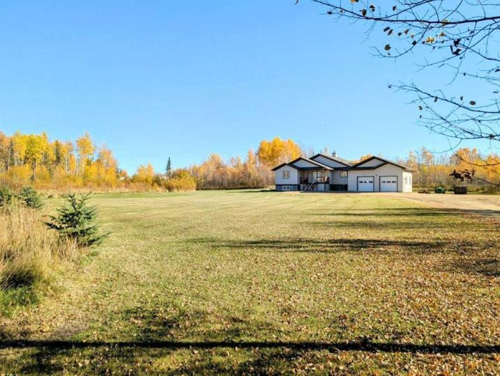 Discover the peace and privacy of acreage living at 37 Poplar Estates Road. Nestled on 3.04 acres surrounded by mature trees, this beautiful bungalow offers a secluded setting with a yard barely visible from the road and plenty of space for future additions like a shop or additional garage. Inside, you’ll find hardwood and tile flooring throughout the main level, main floor laundry, and a spacious double attached garage with extra ceiling height. The beautiful kitchen features a gas stove with electrical hookup available, ample cabinets and workspace, and an adjoining dining area filled with windows and natural light. Enjoy cozy evenings by the wood- burning fireplace in the living room or the Cleveland brand pellet stove in the basement, which offers tall ceilings, an open living area, and a great spot for a pool table. The large primary suite includes a walk-in closet, luxurious ensuite, its own fireplace, and access to the covered back deck, perfect for relaxing and taking in the peaceful surroundings. The home is complete with an efficient on-demand hot water system and backup tank, and with two fireplaces plus a pellet stove, you’ll have peace of mind and warmth all winter long.