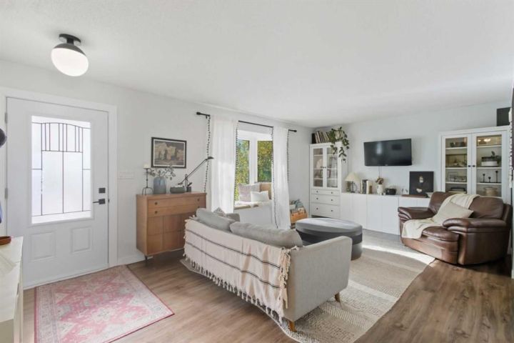 Discover this charming and well-cared-for bungalow, perfectly tucked away on a peaceful, tree-lined street in Carstairs. This home shows pride of ownership from the moment you arrive and has seen numerous recent upgrades, offering true move-in-ready convenience. Curb appeal shines with a mature yard and an inviting front porch that welcomes you inside. Step through the new exterior door into a bright, open layout featuring a spacious foyer that leads seamlessly into a sun-filled living room and comfortable dining area — ideal for both relaxing and entertaining. The kitchen is warm and bright, with a clear view of the expansive fenced backyard, perfect for watching kids or pets play. Down the hall, you’ll find three generous bedrooms, including a primary suite with a private 2-piece ensuite, along with a modernized 4-piece main bath. The fully finished lower level adds impressive living space with a large recreation room, spacious fourth bedroom, and dedicated laundry and storage areas. Recent updates bring comfort and peace of mind, including new windows and exterior doors (2021), fresh interior paint, luxury vinyl plank flooring with new baseboards, and newer stainless steel appliances. Car lovers and hobbyists will love the heated double garage (21'4" x 23'2"), offering plenty of space for vehicles, tools, and toys. With its mature setting, thoughtful upgrades, and welcoming feel, this Carstairs bungalow offers the perfect blend of comfort, style, and functionality.
