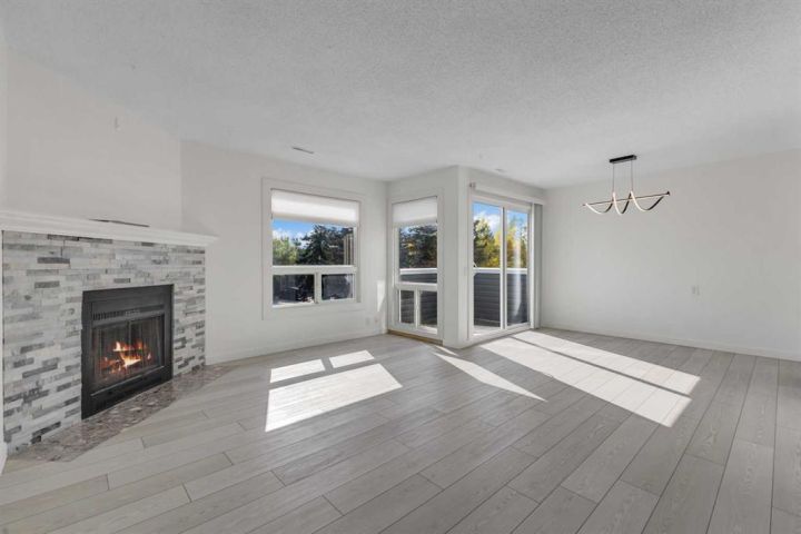Welcome to 14-200 Shawnessy Drive SW – a fully renovated townhouse that combines modern updates, thoughtful design, and an unbeatable location in one of Calgary’s most convenient communities. From the moment you walk in, this home feels bright and inviting. Large windows flood the interior with natural light, highlighting the fresh renovations throughout. The main floor boasts newer luxury vinyl plank flooring, updated light fixtures, and fresh paint for a move-in ready experience. A cozy living room with a fireplace creates the perfect space to gather, while sliding doors open to your private balcony and outdoor area—ideal for relaxing or entertaining on warm evenings. The kitchen has been beautifully updated with sleek quartz countertops, refreshed cabinetry, and ample counter space, while a sun-filled dining area just off the kitchen makes meals easy and enjoyable. Upstairs, you’ll find two generous bedrooms, including a primary suite with a spacious walk-in closet—a rare feature in homes of this size and price point. The 4-piece bathroom has also been refreshed with quartz counters and modern finishes, providing a spa-like feel. Downstairs, the unspoiled basement offers endless potential for customization. Whether you envision a family rec room, gym, office, or hobby space, the choice is yours. You’ll also appreciate the high-efficiency furnace and newer washer & dryer, giving you peace of mind and added value for years to come. This complex has undergone major exterior improvements including newer roof, siding, and windows—big-ticket items already taken care of. Combined with the interior updates, this home offers both comfort and confidence in your investment. The location is truly exceptional: the property backs directly onto Janet Johnstone School and playfield, making it ideal for families. You’re also just a 6-minute walk to the Shawnessy LRT station, providing a quick commute downtown or across the city. Nearby you’ll find Shawnessy’s tennis courts, “The Barn” community centre, outdoor skating rinks, Shawinigan Park, and endless walking paths. Add to that the convenience of shopping, restaurants, and entertainment at Shawnessy Town Centre, and everything you need is right at your doorstep. With its modern updates, spacious layout, and unbeatable location, this townhouse is the perfect opportunity for first-time buyers, downsizers, or investors looking for a turnkey property in an established, amenity-rich community.