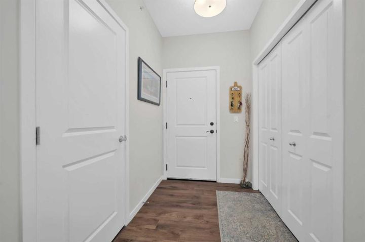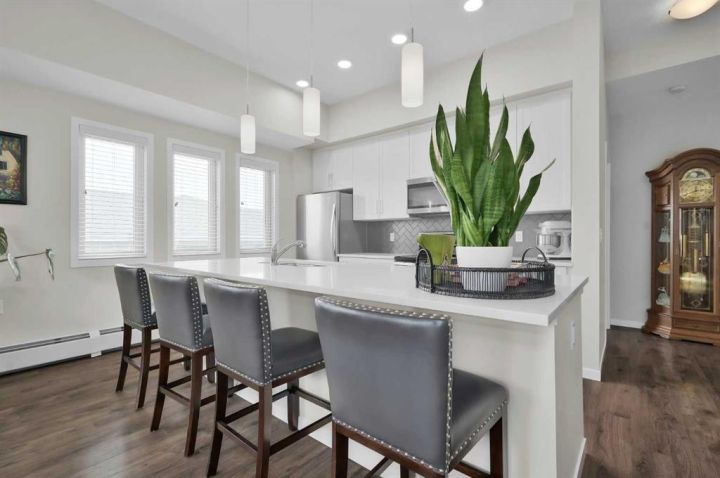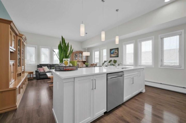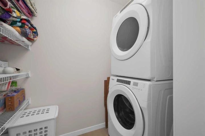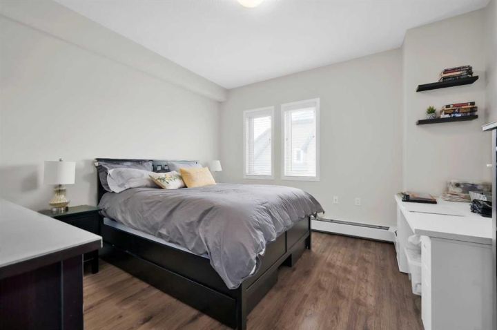 Don't miss this beautifully upgraded, top-floor condo in Mahogany! This 2-bed, 2-bath unit features a modern, airy design with high ceilings and wide-plank laminate flooring throughout. The open-concept kitchen is a showstopper, with a massive island and quartz countertops, perfect for entertaining. The primary suite is a private retreat with a walk-in closet and a stylish ensuite. A second bedroom, another full bath, and in-suite laundry provide everything you need. You'll love the peaceful balcony with its gas hookup and the convenience of a titled underground parking stall and storage locker. The location is unbeatable: walk to Westman Village for dining and shopping, and enjoy year-round fun on the 63-acre Mahogany Lake. Easy access to Stoney and Deerfoot Trails makes commuting a breeze. This one has it all!