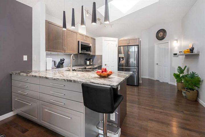 Happy Thanksgiving!! Let's talk turkey! A truly special home, this really is as nice as the photos. With over 2,000 square feet of finished space, come experience this 4-bedroom, 2.5-bathroom home loaded with upgrades and the best garage in the ‘hood! It’s everything you could want in a bungalow and more. Superb curb appeal with an extra-wide corner lot (but no sidewalk to shovel!) and welcoming front porch. Spacious and private foyer. Extraordinary open concept main floor with gorgeous hardwood flooring and vaulted ceiling. Sensational gourmet kitchen with premium granite countertops, corner pantry and chef-quality stainless steel appliances, including gas/electric combo stove and high-end fridge. Look up at that fantastic skylight letting the sun shine in!! While you cook, enjoy your family and friends eating in the adjacent dining room and relaxing in the incredible living room, featuring a whole wall of south-facing windows for maximum sunlight! The primary bedroom is tucked away at the front of the house with a full wall of closets and a private ensuite with the same lux granite and tile floors. A second bedroom or home office plus a lovely powder room complete the main floor. Head downstairs and check out the massive family room, large enough for several zones, as well as a cozy corner gas fireplace. Two more huge bedrooms await – one with a walk-in closet – plus another swanky full bathroom with granite, great laundry room, and plenty of storage in two utility rooms. This home is absolutely beautiful – but if you’re a garage guy, the best is yet to come! It does not get better than this: oversized, extra high, insulated, heated garage with slat system on the walls, oversized garage door for large vehicles AND a second garage door that opens to the private back yard patio so you can socialize and do garage stuff all at the same time. What else could you possibly want?! Maybe central air conditioning, a fenced yard and an irrigation system? Check!! This home truly has it all: a picture-perfect home upgraded to the max and your dream garage. Give thanks over your turkey dinner for this gem!