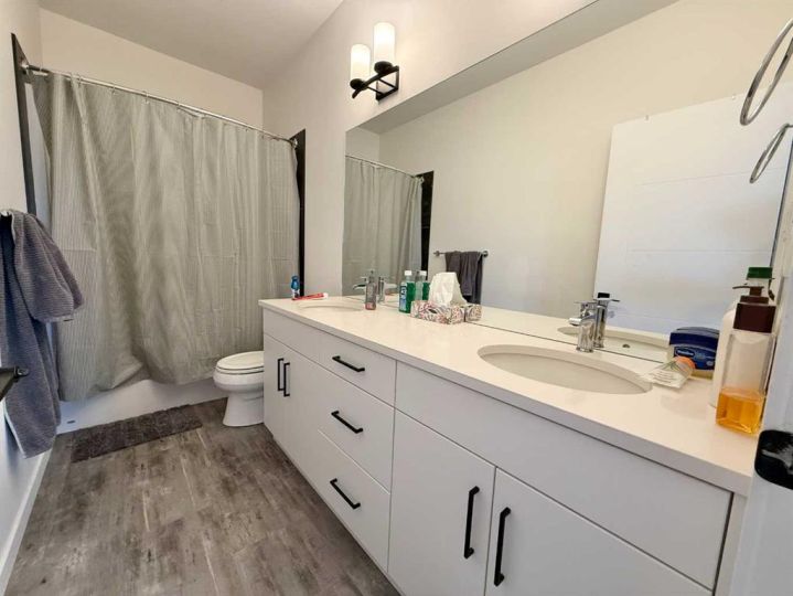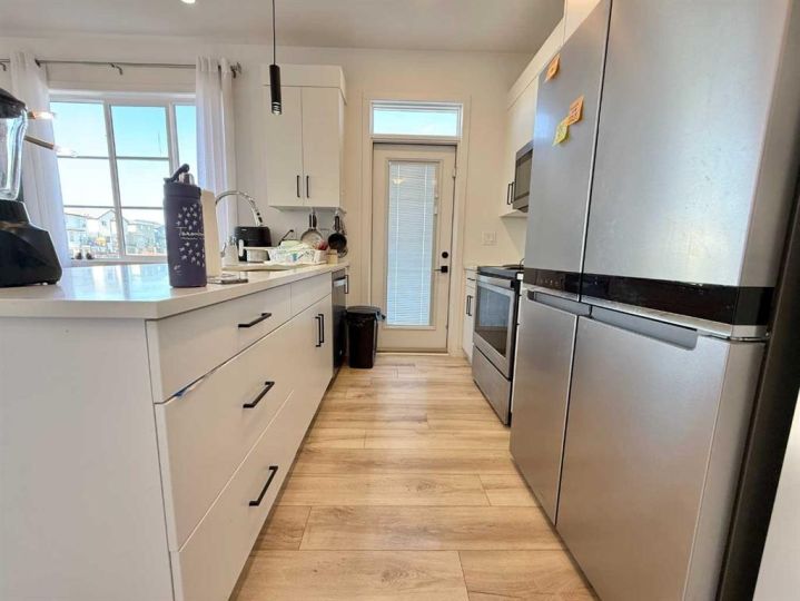 Welcome to this stunning 5-bedroom, 3-bathroom legally suited home located in the highly desired Blackwolf community of North Lethbridge. Built in 2021 by Avonlea Homes, this property showcases modern design and high-end finishes throughout. The upper level offers an open-concept layout that flows seamlessly from the living room to the dining area and into the beautifully designed kitchen, complete with large stone countertops, ample cabinetry, and a spacious pantry. On the main level, you’ll find three generous bedrooms and two stylish 4-piece bathrooms, including a primary ensuite with dual sinks. Each bedroom features a well-sized closet, and the unit includes private in-suite laundry for added convenience. The lower level boasts a bright and spacious 2-bedroom, 1-bathroom legal suite with its own private entrance. The suite features an open-concept living and dining area, a modern kitchen with plenty of counter space, and two large bedrooms — the primary featuring a spacious walk-in closet. Stacked laundry is also included for the exclusive use of the suite’s occupants. Outside, enjoy a fully fenced backyard, a large front driveway, and an additional parking pad in the rear, offering ample space for vehicles or guests. Perfectly situated across from a green strip and close to shopping, schools, restaurants, and parks, this home is ideal for both homeowners and investors alike. Don’t miss your opportunity to own this modern, income-generating property in one of Lethbridge’s most sought-after and fastest growing neighbourhoods!