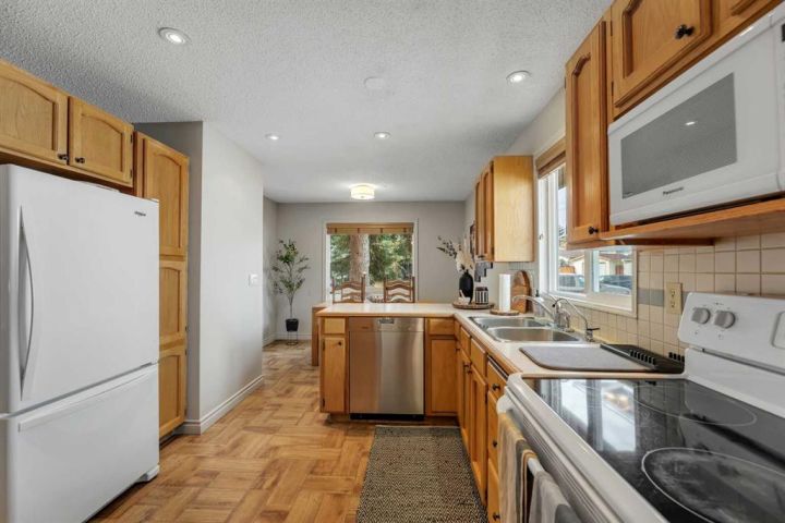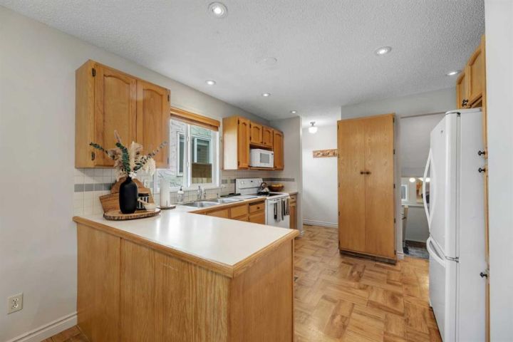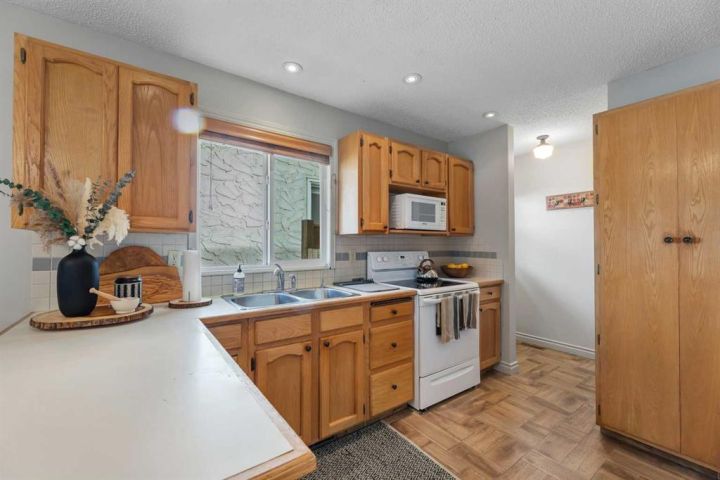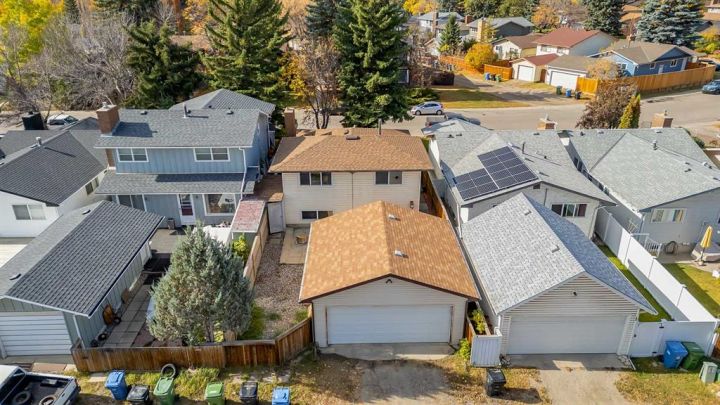 Nestled on a quiet, tree-lined street in desirable Midnapore, this inviting home blends comfort, function and family-friendly living in one of Calgary’s most established lake communities. Thoughtful updates throughout, central air conditioning and low-maintenance landscaping ensure an easy, relaxed lifestyle year-round. A charming west-facing front deck with built-in seating and plenty of space to unwind beneath the mature trees, creates a peaceful retreat. Inside, the neutral palette and warm finishes set a welcoming tone. The spacious living room invites relaxation in front of the wood-burning fireplace while oversized windows flood the space with natural light and extra pot lights illuminate the evening. An efficient kitchen with timeless oak cabinetry offers clear sightlines into the adjoining dining area, perfect for weeknight dinners or gatherings with friends. The comfortable primary bedroom on the upper level features a custom closet system and convenient 2-piece ensuite, providing a private retreat for busy mornings. Two additional bright bedrooms and a 4-piece bathroom complete this level, offering space for growing families or visiting guests. A generous recreation room in the basement easily adapts to family life, with plenty of room for media, games, workouts and hobbies. The layout allows for multiple zones so everyone can enjoy their own corner of the home, while abundant storage keeps everything organized. Outside, a private, fully fenced backyard is designed for easy enjoyment with a full-width patio ideal for barbecuing and summer evenings under the stars. The oversized double detached garage offers plenty of room for vehicles, bikes and outdoor gear, keeping daily life effortlessly functional. Located within a 9-minute walk to the residents-only Midnapore Lake where families can swim, skate, or kayak through the seasons and just an 8-minute walk to Centennial High School, this home offers exceptional lifestyle convenience. Restaurants, coffee shops and everyday essentials are all within a short stroll, with nearby Shawnessy Shopping District providing even more choices for dining, groceries and entertainment. Easy access to Macleod Trail and the LRT ensures quick commutes while maintaining a quiet, community-oriented feel. A perfect opportunity to enjoy lakeside living with modern comfort, timeless charm and a location designed for family connection!