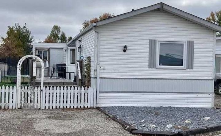 Welcome to West Park Village located in Strathmore, just 30 min east of Calgary. This bright and spacious 2 bedroom mobile home offers an open floor plan with vaulted ceiling and a comfortable flow throughout. The home was originally a 3 bedroom and can easily be converted back by re-installing the wall between the junior rooms. The large primary features a private 4 piece ensuite with soaker tub, built in cabinets along with plenty of closet space. Enjoy the sunny kitchen and living area that opens onto a generous sized deck perfect for relaxing or entertaining! Additional highlights include a 14'x 7.9' boot or storage room (non heated) addition, air conditioning and situated on a leased lot that includes water, waste, garbage and snow removal . Fenced yard with room to garden or play with kids & pets. Conveniently located close to schools, shopping, walking paths, public library, recreation facilities and downtown amenities. Affordable living in a great community. Book a showing today and be in your new home for Christmas.