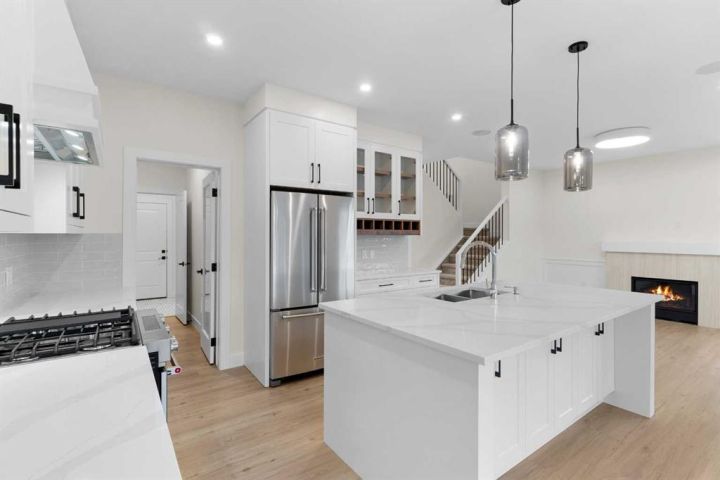 Welcome to your New Home! Meticulously designed by Marygold Homes, this stunning home offers a capacious, open floor plan, with over 2000 SQ.FT. of living space, 3 BEDROOMS, and 2.5 BATHROOMS, and makes a flawless fit for families looking for a pleasant everyday living space. Situated in the community of Mandalay Estates in Carstairs, this exceptional property is close to downtown and recreational spaces such as the Carstairs Community Golf Course, Memorial Arena, and Campground, is also just a short distance from Hugh Sutherland School, plus there is the added convenience of having a LOBLAWS GROCERY STORE being located right within the subdivision. As for the home itself, inside you will find luxury vinyl plank flooring on the main floor, and plush carpet on the upper floor, complemented by large windows that flood the space with natural light throughout. The main floor is directly accessible from the garage via the mudroom fully equipped with a built-in bench and hooks. The walk-through pantry leads from the mudroom to the kitchen, which features a central island with bar-style seating, stainless steel appliances, and soft-close hardware throughout. The full-height shaker cabinetry and quartz countertop combo provide both sufficient storage and an exquisitely sophisticated aesthetic. Adjoining the urbane kitchen is an inviting dining area with a door which leads outside to the sizable treated-wood deck and backyard. A capacious and welcoming living room comes complete with a mantle and tile-surrounded gas fireplace, perfect for family get-togethers. The in-home office space/flex room offers ample room for both privacy and productivity. The upper level features three spacious bedrooms, with the master suite and two secondary bedrooms spaced away for optimal privacy. The master suite comes complete with oversized windows and an astonishing built-in walk-in closet with custom-shelving and plenty of storage space. The massive 5-pc ensuite features a glass shower, built-in soaker tub, vanity with dual sinks, and separate toilet access. The laundry room is also conveniently located on the second floor. Neighboring this space is a full 4-pc bathroom and super-spacious bonus room, ideal for quality family time. The two secondary bedrooms, each with separate built-in closets, complete the upper-level layout. The hardie-board exterior and an attached double car garage give this property both functionality alongside a strong curb appeal, and the unfinished basement has a 9-ft ceiling, a separate side entrance, and rough-ins for a future bathroom - a notable and customizable add-on to suit a growing family's needs. **GST Rebate, if any, shall go to the seller. PLEASE NOTE: Photos used are of the same/similar layouts or previous projects and are for reference and illustrative purposes only.**