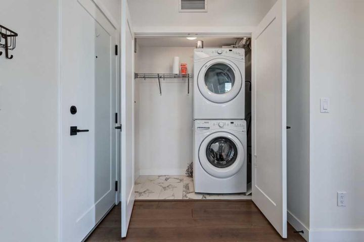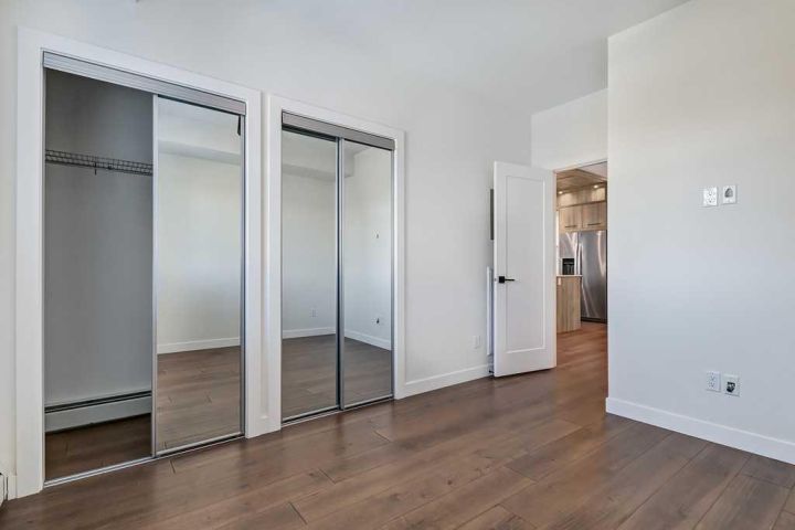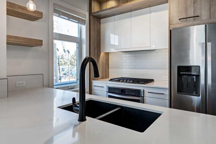 Corner end unit on the 3rd floor in a prime location, on the quiet side of the building. This home has ultra modern interiors with wide plank engineered hardwood flooring, high gloss white cabinetry with soft close drawers and doors, striking black fixtures. Well planned and scaled home with not a square inch of unused space. Gourmet kitchen offers Cesarstone quartz countertops, gas countertop stove, AEG pullout hoodfan, built in wall oven, Double door Stainless steel fridge, and anthracite undermount sink with Kohler touchless Faucet. Private and quiet location with no view obstructions, or neighbours looking into your windows. This building is just 3 blocks to the Shaganappi Point LRT station, and a 5 min drive to DT and 17th ave. An Unbeatable inner city location. Insuite Laundry. One underground Parking Stall. Same floor out of suite storage locker.Secure Bike storage in parkade.