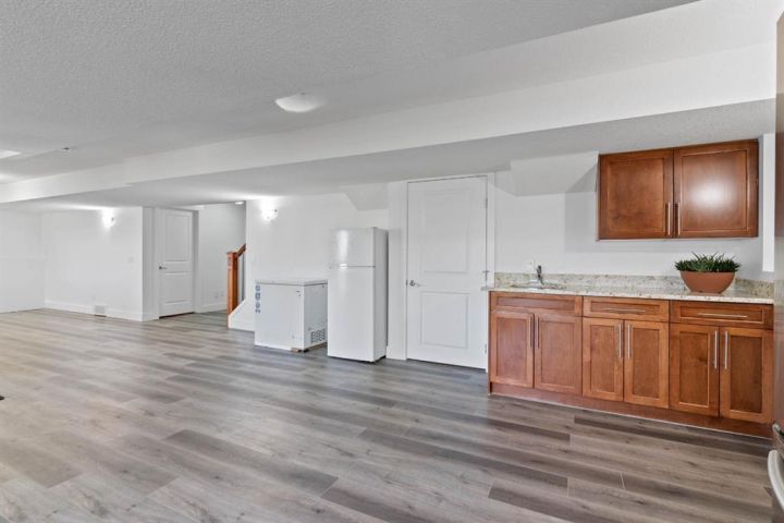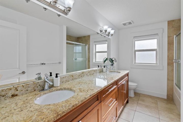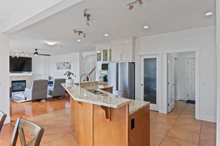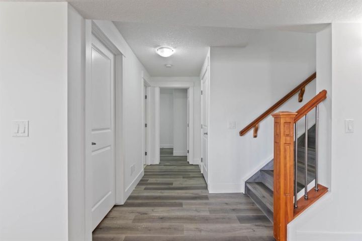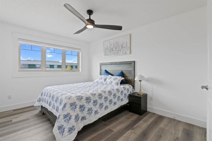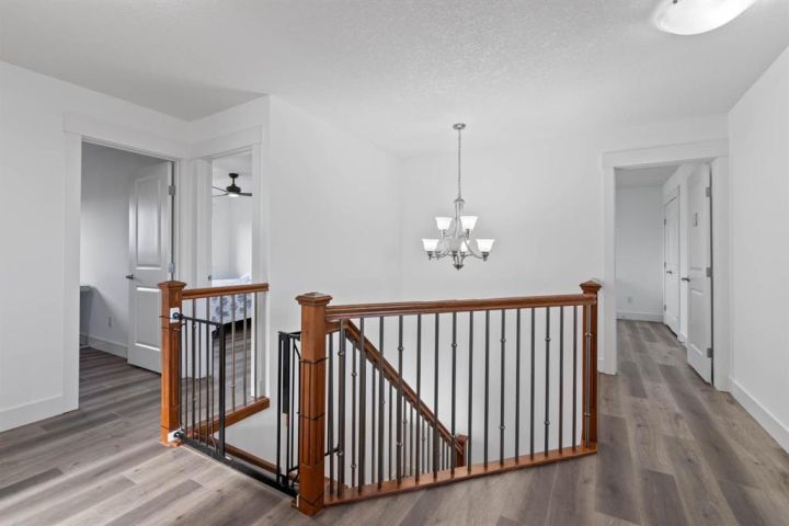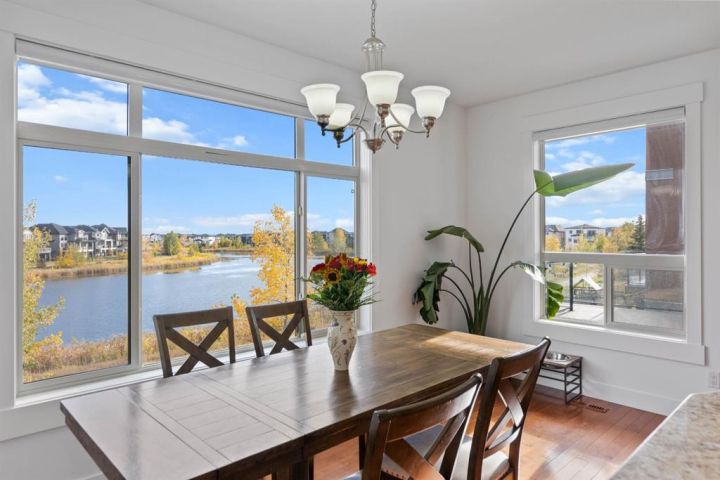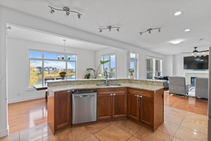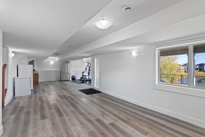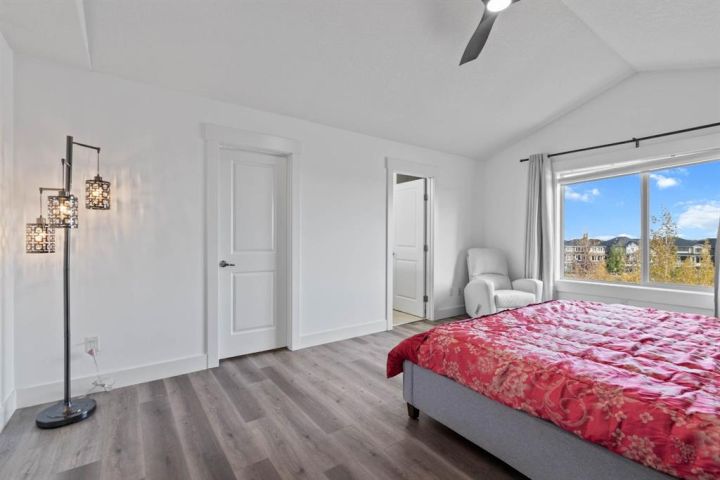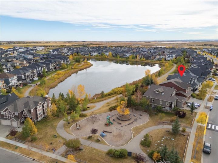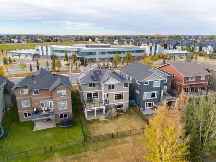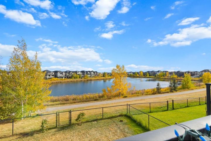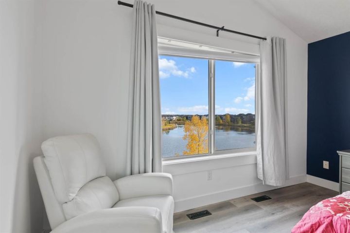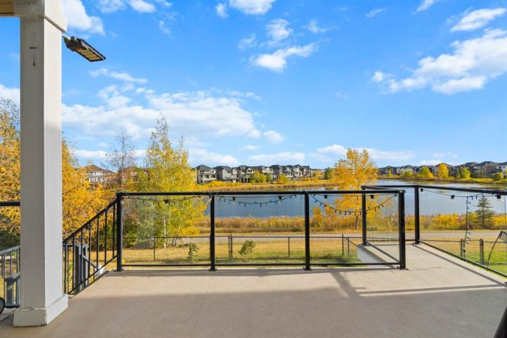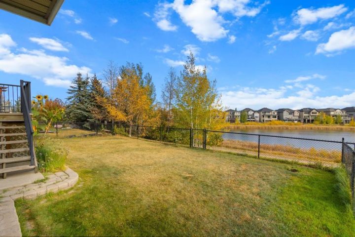 Luxury Walkout Home Backing Onto a Pond — Steps From School, Park & Shops! Prepare to be impressed by this beautifully designed 2725 SQFT walkout home, perfectly situated on a large lot backing onto a serene pond and lush green path and accross from East Lake School. With a thoughtful layout, elegant finishes, and a family-friendly location, this home strikes the perfect balance between luxury and comfort. From the moment you walk in, you’ll notice the attention to detail everywhere — from the spacious tiled foyer to the 9-foot knockdown ceilings and rich hardwood floors that flow throughout the main level. French doors open to a bright main floor den, ideal for your home office or study. At the heart of the home is a chef’s kitchen designed to impress. Featuring custom two-tone cabinetry, granite countertops, a large central island with seating, and stainless steel appliances, including a gas range and professional hood fan, this kitchen is both beautiful and functional. The glass-front cabinets and walk-in pantry complete the space with flair. From the dining area, step out onto your massive vinyl deck with glass railings, where you can take in peaceful pond views — the perfect setting for morning coffee or sunsets. The stairs lead to a fully landscaped backyard, offering plenty of space for kids and pets to play. Upstairs, you’ll find four spacious bedrooms, including a luxurious primary suite with vaulted ceilings and picturesque pond views. The spa-inspired ensuite includes double granite vanities, a large soaker tub, a separate shower, and heated tile floors (also found in every bathroom!). A bonus room and stylish 5-piece main bath complete the upper level — perfect for family movie nights or a homework zone. No carpet anywhere — just elegant hardwood , tile and vinyl plank throughout, combining luxury style with easy upkeep. The fully finished walkout basement extends your living space with a bright family room, recreation area with a wet bar, 5th bedroom, and full bath — with potential for a 6th bedroom if desired. Oversized windows bring in natural light and connect you to your private backyard retreat. This home is thoughtfully equipped with energy-efficient solar panels, reducing monthly utility costs while contributing to a more sustainable future. Additional highlights include a finished double garage, and enclosed storage under the deck.