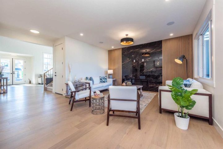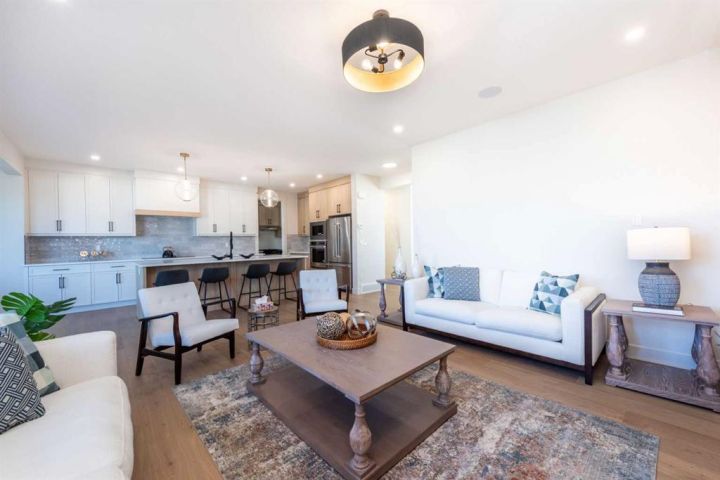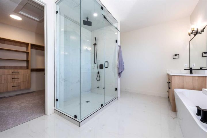 Introducing a one-of-a-kind luxury Showhome by Devine Custom Homes—offering over 4,500 sq ft of impeccably finished living space in the prestigious Waterford community of Chestermere. This grand residence is a true standout, featuring a rare 3-bedroom legal walkout basement suite, ideal for multi-generational living or rental income. Set on a fully landscaped lot, this home impresses inside and out with its two balconies, rear deck, covered patio, and a grand front porch ideal for enjoying the outdoors in every season. The striking glass double front doors open into a dramatic open-to-above formal living room, leading to an expansive great room and a chef-inspired gourmet kitchen. A generous spice kitchen, main floor bedroom, and a full 3-piece bathroom offer practicality and flexibility. Upstairs, you’ll find four spacious bedrooms, including a lavish primary suite with a private balcony and a secondary master suite. A large bonus room overlooking the main living area enhances the sense of space and openness, perfect for family gatherings or relaxing retreats. Additional features include a triple front attached garage, high-end finishes throughout, and the incredible potential of a legal 3-bedroom basement suite with walkout access. This is a rare opportunity to own a showhome that blends luxury, design, and income potential—truly a standout in Waterford, Chestermere.