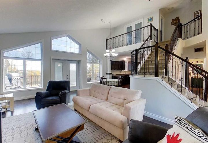 Welcome to Bench Creek Estates — where mountain views and modern comfort unite. This custom two-storey home on 4.05 acres offers breathtaking southwest views of the Rocky Mountains, combining refined country living with the convenience of being in town. The open-concept design features a striking staircase, bright and spacious living areas, and a gourmet kitchen with abundant cabinetry, a center island, stainless steel appliances, and a new induction stove — ideal for both daily living and entertaining. The master suite includes two private balconies — one overlooking the lower level and the other framing majestic mountain views — and a spa-inspired 5-piece ensuite with a large air-jet soaker tub, walk-in shower, and dual vanity, complemented by a spacious walk-in closet with convenient washer and dryer. Two additional bedrooms and 4 pc bathroom complete the upper level. The fully developed walkout basement offers comfort and entertainment, featuring in-floor heating, a theatre room with projector and sound system, a large family room, a 3-piece bathroom, and a spacious fourth bedroom. The triple attached heated garage provides ample parking and includes a bonus room, perfect for a home office, gym, or ultimate man cave. Recent upgrades and features include new electronic window blinds, fresh interior paint, central air conditioning (2025), and a large new deck — perfect for entertaining or enjoying the spectacular views. Additional highlights include in-floor heating in the basement and garage, hot water on demand, and three new garage door openers with video capabilities, combining comfort, convenience, and modern technology throughout. This property is one of 11 in a “bare land condominium”, where you own your lot and have access to 30 acres of fenced and cross-fenced common land, with Bench Creek running along the edge — offering the perfect balance of privacy, community, and natural beauty.