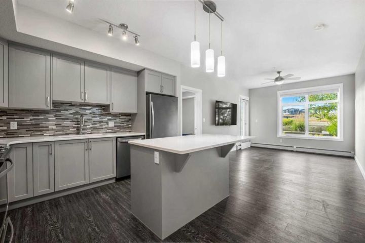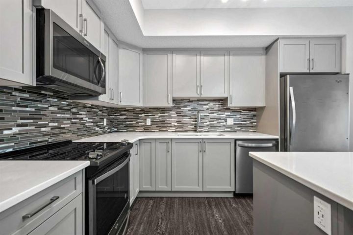 Welcome to Suite 1112 at 3727 Sage Hill Drive NW, a beautifully upgraded MAIN-FLOOR CONDO that combines MODERN STYLE, FUNCTIONALITY, and COMFORT in one of Calgary’s most desirable northwest communities. This thoughtfully designed home features HIGH-QUALITY FINISHES and a SMART, EFFICIENT LAYOUT, making it an excellent choice for FIRST-TIME BUYERS, DOWNSIZERS, or INVESTORS looking for low-maintenance luxury. Step inside to discover a BRIGHT, OPEN-CONCEPT LIVING SPACE with LUXURY VINYL PLANK FLOORING throughout and an abundance of NATURAL LIGHT. The UPGRADED KITCHEN stands out with QUARTZ COUNTERTOPS, a FULL-HEIGHT BACKSPLASH, and PREMIUM STAINLESS STEEL APPLIANCES, including an oven that has been rarely used. Designed for both cooking and entertaining, the kitchen flows seamlessly into the DINING AND LIVING AREAS, creating a warm and inviting atmosphere. Enjoy WEST-FACING SUNSETS from your PRIVATE BALCONY, complete with a GAS LINE FOR YOUR BBQ—the perfect setting for summer evenings and gatherings with friends. The SPACIOUS PRIMARY BEDROOM offers a DOUBLE-SIDED WALK-IN CLOSET and a PRIVATE ENSUITE BATHROOM with a WALK-IN SHOWER, creating a MODERN, SPA-LIKE RETREAT. A SECOND BEDROOM provides flexibility for a HOME OFFICE, GYM, or GUEST ROOM, while IN-SUITE LAUNDRY adds everyday convenience. Additional features include a TITLED PARKING STALL, SECURED BUILDING ACCESS, and ACCESS TO WELL-MAINTAINED COMMON AREAS. Situated in the VIBRANT COMMUNITY OF SAGE HILL, this home offers close proximity to SHOPS, RESTAURANTS, GROCERY STORES, FITNESS STUDIOS, and WALKING PATHS. With quick access to STONEY TRAIL and SHAGANAPPI TRAIL, commuting across the city is simple and efficient. Suite 1112 at 3727 Sage Hill Drive NW delivers MODERN FINISHES, A FUNCTIONAL FLOOR PLAN, and A PRIME LOCATION—a perfect combination of STYLE, COMFORT, and CONVENIENCE.