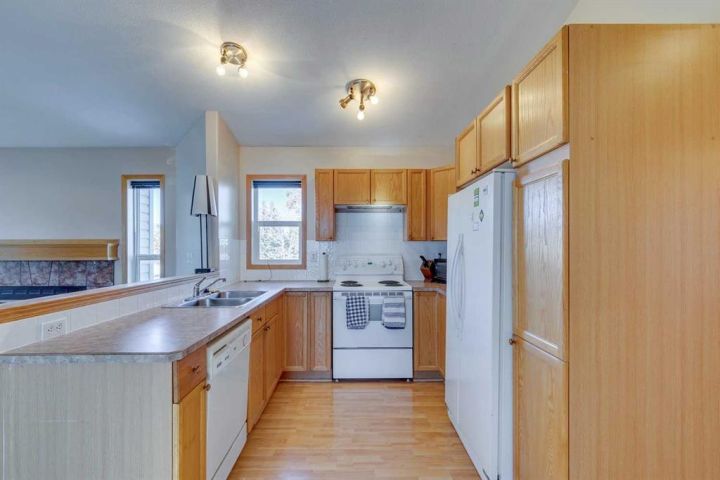 Incredible value in this walkout bungalow with a double attached garage and an illegal basement suite. Situated on a corner lot with plenty of parking and a large backyard, this home offers excellent potential. The main level features vaulted ceilings, a cozy wood-burning fireplace in the living room, two bedrooms, a full bathroom, and its own laundry. The walkout basement has a separate entrance and large windows that fill the space with natural light. It includes an illegal one-bedroom suite with a 3-piece bathroom, separate laundry, and partial renovations already started—ready for the next owner to complete. Located in a desirable neighborhood just steps from the Sheep River Valley and its beautiful walking paths, this property needs more than a bit of TLC, but offers great opportunity for value and versatility.