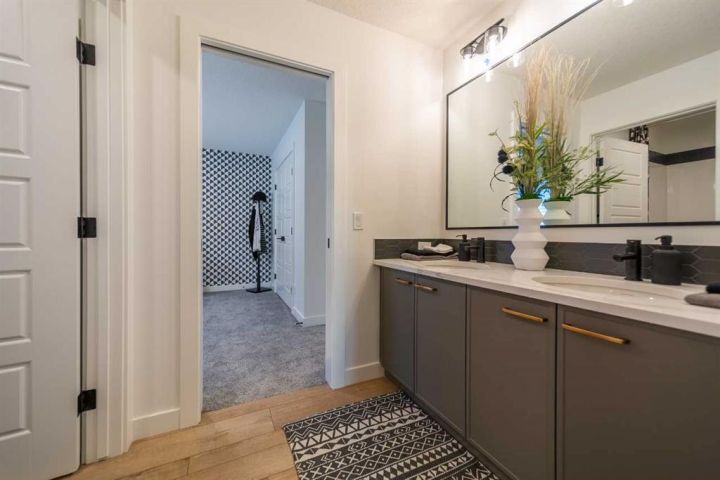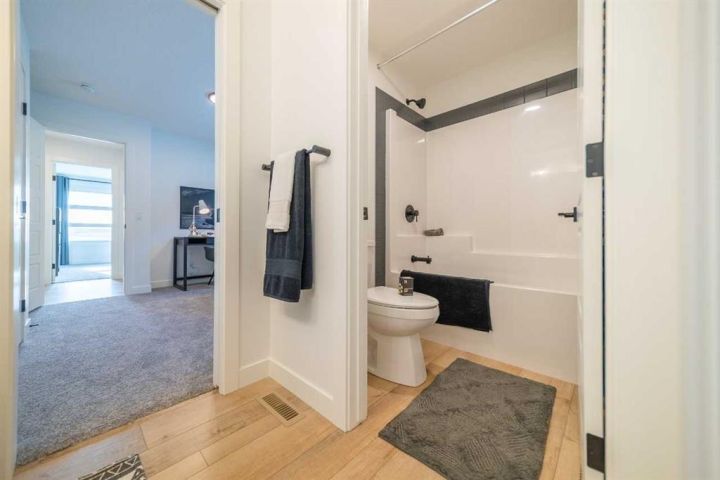 Discover the Pierce 2 — where modern design meets thoughtful functionality. Built by a trusted builder with over 70 years of experience, this home showcases on-trend, designer-curated interior selections tailored for a home that feels personalized. Energy efficient and smart home features, plus moving concierge services included in each home. This stunning home features a walkout basement, a main floor flex room with French doors, and a full bath with a walk-in shower. Only the garages are attached, offering the feel of a detached home. Enjoy a sleek kitchen with stainless steel appliances, gas range, and a separate spice kitchen with pantry shelving. The great room boasts an electric fireplace with tile surround, and the rear deck includes a BBQ gasoline rough-in. Upstairs, find two spacious primary bedrooms with walk-in showers; the main ensuite is a luxurious 5-piece retreat. Flooded with natural light and finished with LVP flooring, tile in baths, and quartz countertops throughout. This energy-efficient home is Built Green certified and includes triple-pane windows, a high-efficiency furnace, and a solar chase for a solar-ready setup. With blower door testing that can may be eligible for up to 25% mortgage insurance savings, plus an electric car charger rough-in, it’s designed for sustainable, future-forward living. Featuring a full range of smart home technology, this home includes a programmable thermostat, ring camera doorbell, smart front door lock, smart and motion-activated switches—all seamlessly controlled via an Amazon Alexa touchscreen hub. Photos are representative.