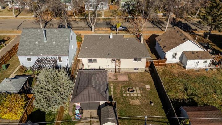Welcome to this well-kept 5-bedroom, 2-bathroom home offering 1,233 sq. ft. of comfortable living space on a 6,000 sq. ft. lot. Nestled on a quiet, tree-lined street, this property provides a wonderful blend of small-town charm and everyday convenience—just a short walk to downtown Ponoka where you’ll find shops, restaurants, and essential amenities. The main floor features a bright and spacious living area, three comfortable bedrooms, a full bathroom, and a generous kitchen/dining area perfect for family gatherings. The kitchen is full of character, featuring thoughtful details like a built-in spice cupboard and a convenient flour drawer—unique touches that you don’t often find in today’s homes. Downstairs, you’ll discover two additional bedrooms, a den, a second bathroom, and a laundry area, plus an unfinished space ready for your personal touch—whether you envision a rec room, workshop, or extra storage. Outside, enjoy a single detached garage with a metal roof, extra parking at the back, and a handy storage shed. With plenty of room for outdoor activities and a peaceful setting, this property offers a great opportunity to settle into a friendly community while still being close to everything you need.