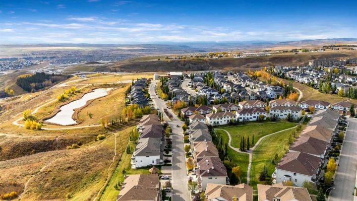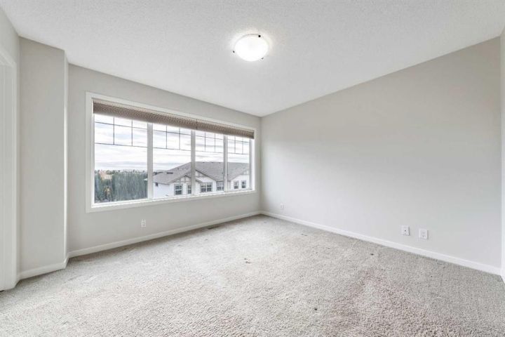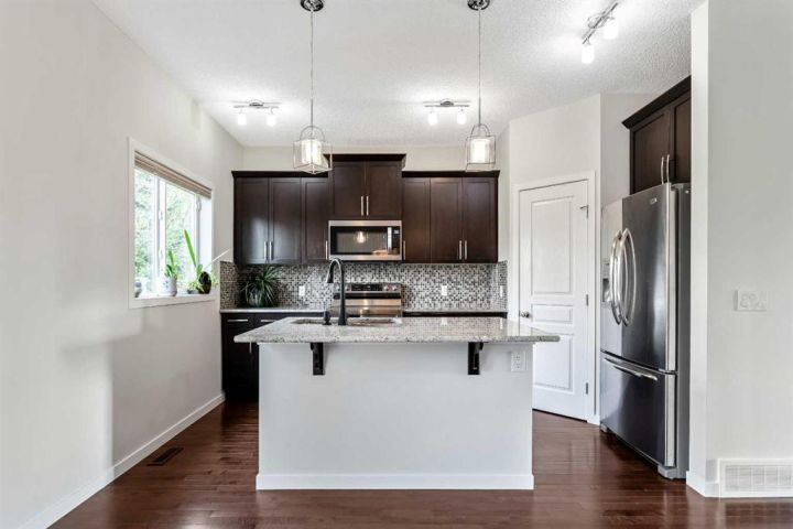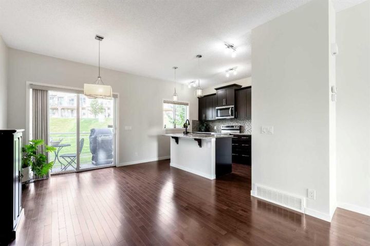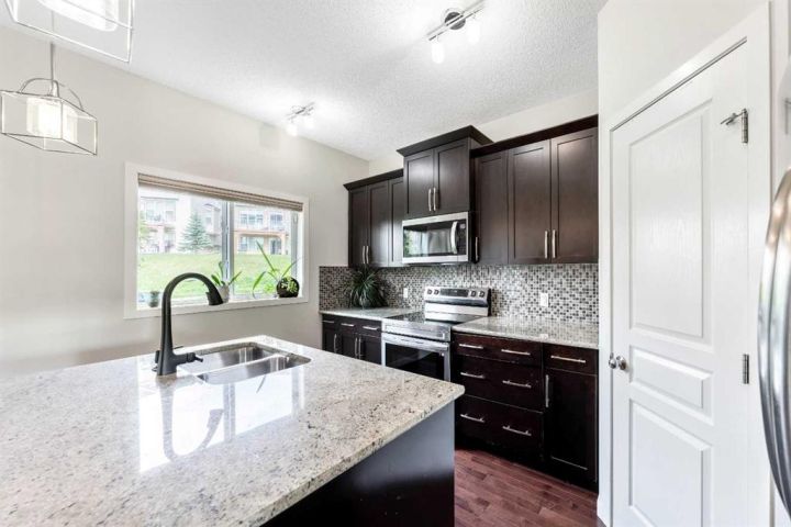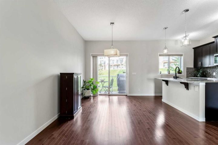 Welcome Home!!! This 1579 sq ft, Calbridge built townhome is nestled in the sought after community of Sunset Ridge with amazing views of the stunning valley covered with lush forests. When you step into this home you can tell it’s been well taken care of. We start with a large foyer to greet your guests, as you look above to a beautiful high vaulted, brightly lit ceiling. There is plenty of space to wipe your dogs paws with access to the attached garage. Up one flight and you have beautiful hardwood floors that flow throughout the entire main floor. A great open floor plan with a large kitchen and living room area. The kitchen has plenty of counter and cupboard space, a pantry, stainless steel appliances, and gorgeous granite countertops. From the kitchen/dining room you can step out onto the deck where you back onto a green space with no neighbours behind! Great place to BBQ! The living room has tons of space to host friends, a cozy fireplace, with large sliding glass windows which leads to an impressive front patio to take in the views of the valley as you have your morning coffee. The main floor is capped off with a tiled powder room. The upstairs has 3 bedrooms, the large master bedroom has a 3 piece ensuite, a walk in closet and large windows to take the views in. The laundry room is conveniently placed upstairs so you don't have to carry your clothes all the way downstairs. There is a 4 piece bathroom which finishes off the upper floor. The home has a great double attached tandem garage. The hot water tank was just recently replaced. Amazing walking paths to take the dogs out, and close to schools, shopping and is situated perfectly to get out of town, a 45 minute drive to Canmore/Banff. This place is perfect for a family, investor, or a first time home buyer! Don't miss out!!