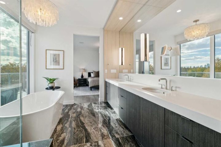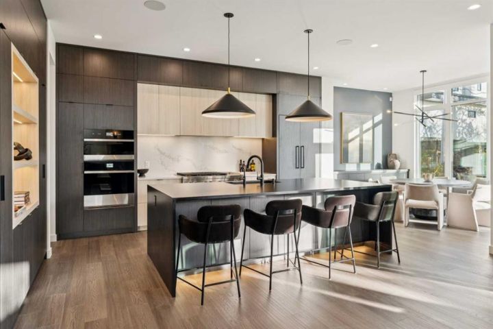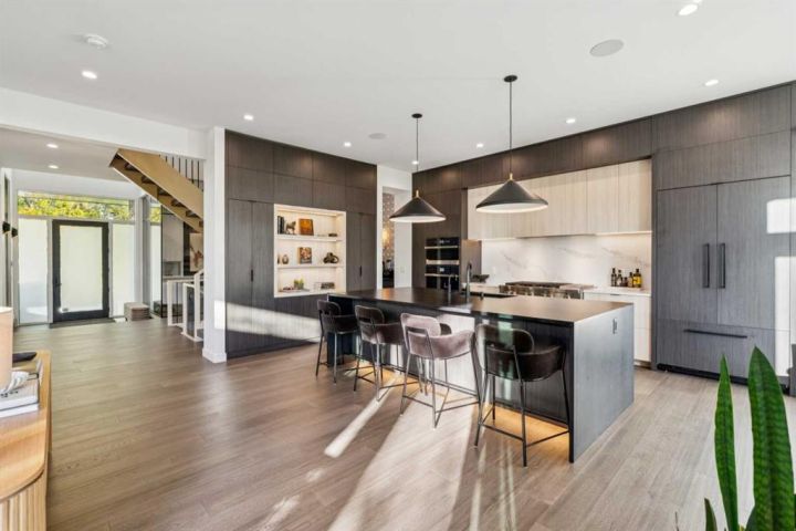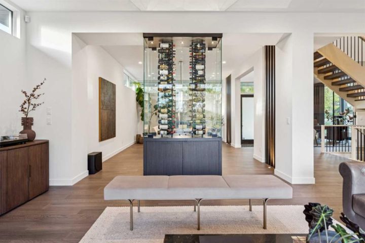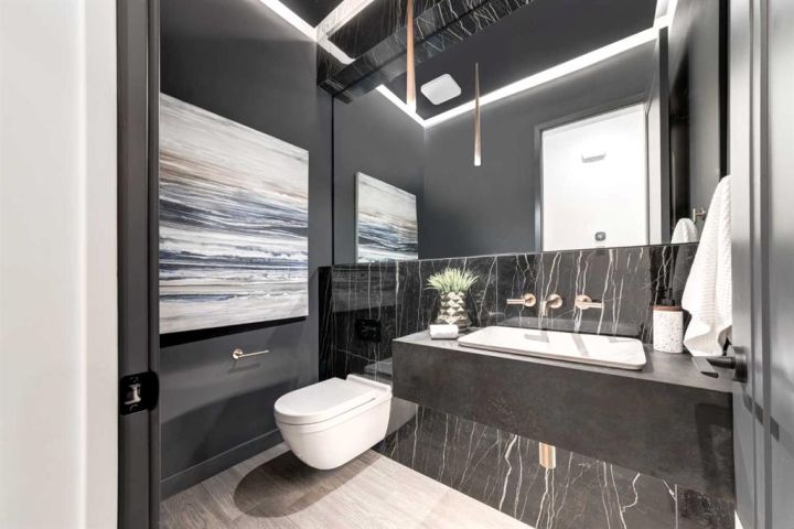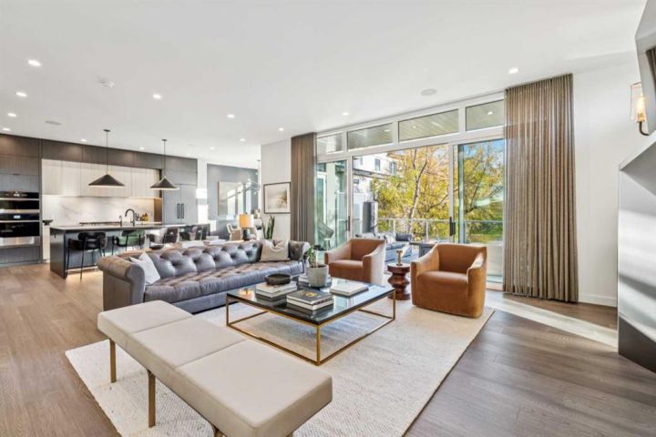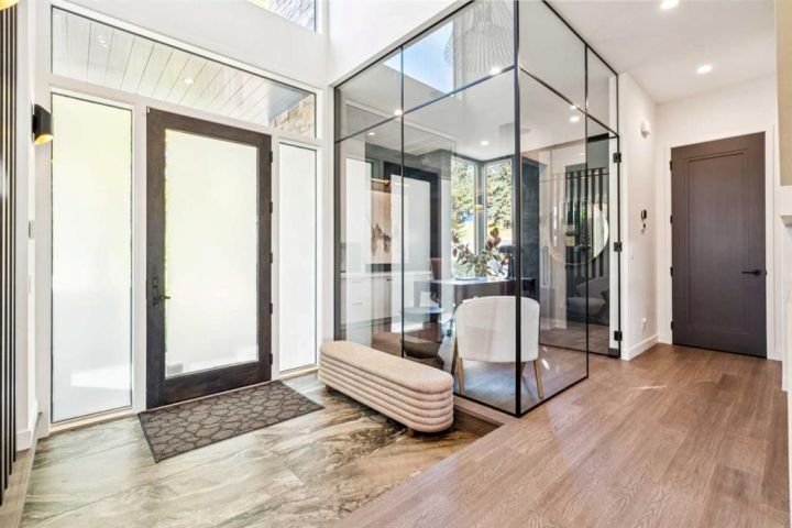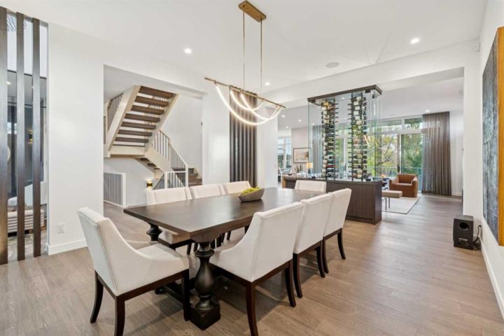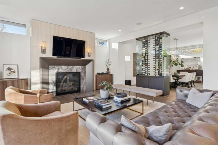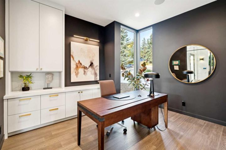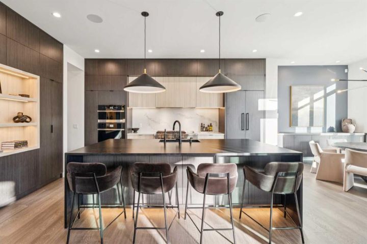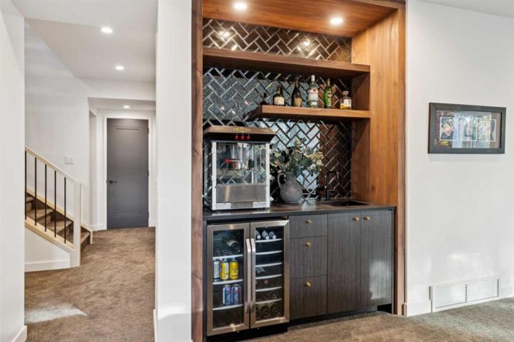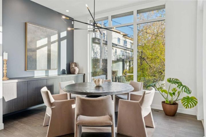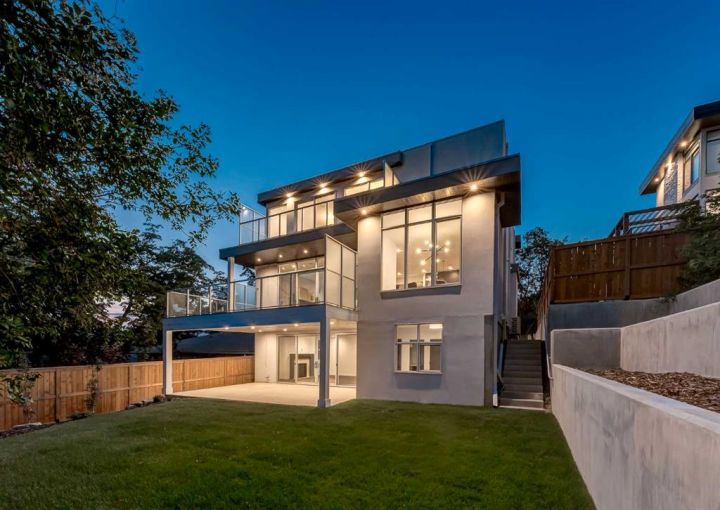 Tucked away in an exclusive enclave just moments from Kensington and the downtown core, this modern architectural residence offers refined living in a truly exceptional setting. Designed for both comfort and sophistication, the home combines thoughtful design, superior craftsmanship, and cutting-edge systems throughout. Built to the highest standards, it features triple-pane windows, 2-zone hydronic in-floor heating in the basement, finished triple garage with floor drains, and a dual-zoned HVAC system. Extensive concrete retaining walls and planters frame the property, while Lutron lighting control, an 8-zone sound system with integrated ceiling and outdoor speakers, and 7.2 surround sound in the recreation room elevate the living experience. Porcelain tiles imported from Italy, Caesarstone countertops, and solid core interior doors reflect the quality that defines every detail. The main level showcases expansive open-concept living with 10-foot ceilings and floor-to-ceiling south-facing windows that flood the home with natural light. The kitchen is a true centrepiece—equipped with integrated JennAir appliances including a 48” gas range top, and a walk-in coffee bar/pantry with prep sink and wine fridge. A striking glass wine wall with floating racks separates the formal dining area, which comfortably hosts 12–14. The stone-clad fireplaces anchors the living room, while a glass-enclosed main floor den provides a serene workspace. Step outside to the 25’ x 16’ deck overlooking a secluded, landscaped south yard surrounded by mature trees. Upstairs, three spacious bedrooms each feature a private ensuite. The primary suite is a sanctuary with a spa-inspired 5-piece ensuite bathroom with heated floors, custom window coverings, an impressive 21-foot walk-in closet with extensive built-ins, and a private south-facing balcony offering sweeping and serene views of the Bow River Valley. A large, well-appointed laundry room completes the upper level. The walk-out basement includes a guest suite with attached bath, a recreation room with gas fireplace and wet bar, and access to a covered patio and your oversized triple garage with heated floors. The home has security cameras, central vacuum, irrigation, EV charging, and hot tub hookup. Perfectly positioned for an active lifestyle, this residence is steps from the Bow River pathways, West Hillhurst tennis and pickle-ball courts, and offers quick access to 16th Avenue for effortless weekend escapes to the mountains. Minutes from top schools, hospitals, shopping, the C-train, and downtown Calgary—this is contemporary living at its most complete and luxurious.