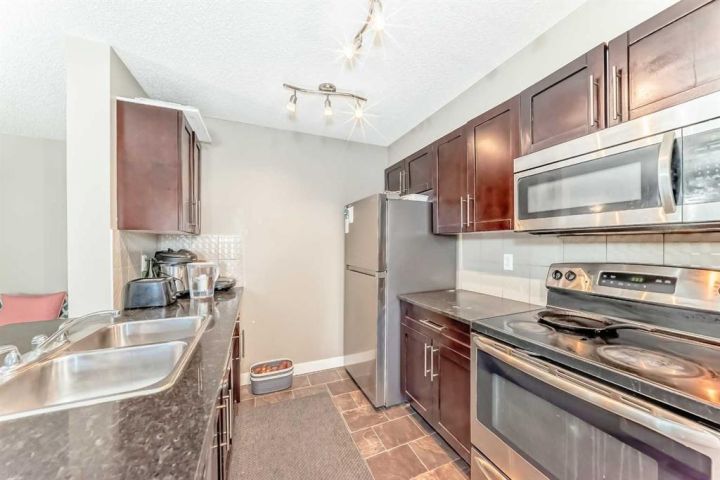 Hello, Gorgeous! Welcome to 8201-403 Mackenzie Way SW in Airdrie. This beautifully updated corner unit offers 2 bedrooms and 2 bathrooms, combining modern finishes with everyday convenience. The open-concept layout is filled with natural light and features real wood cabinetry, granite countertops in both the kitchen and baths, and a full stainless steel appliance package. The spacious primary suite includes a walk-in closet and an upgraded ensuite with a custom tiled shower. A second bedroom and full bath provide space for guests or a home office, while the dedicated office nook, in-suite laundry, and private balcony add comfort and functionality. Enjoy peace of mind with your own heated underground parking stall and condo fees that include water and heat. Perfectly located within walking distance to shopping, restaurants, and Airdrie’s scenic walking paths, this home offers stylish, low-maintenance living in a vibrant community.